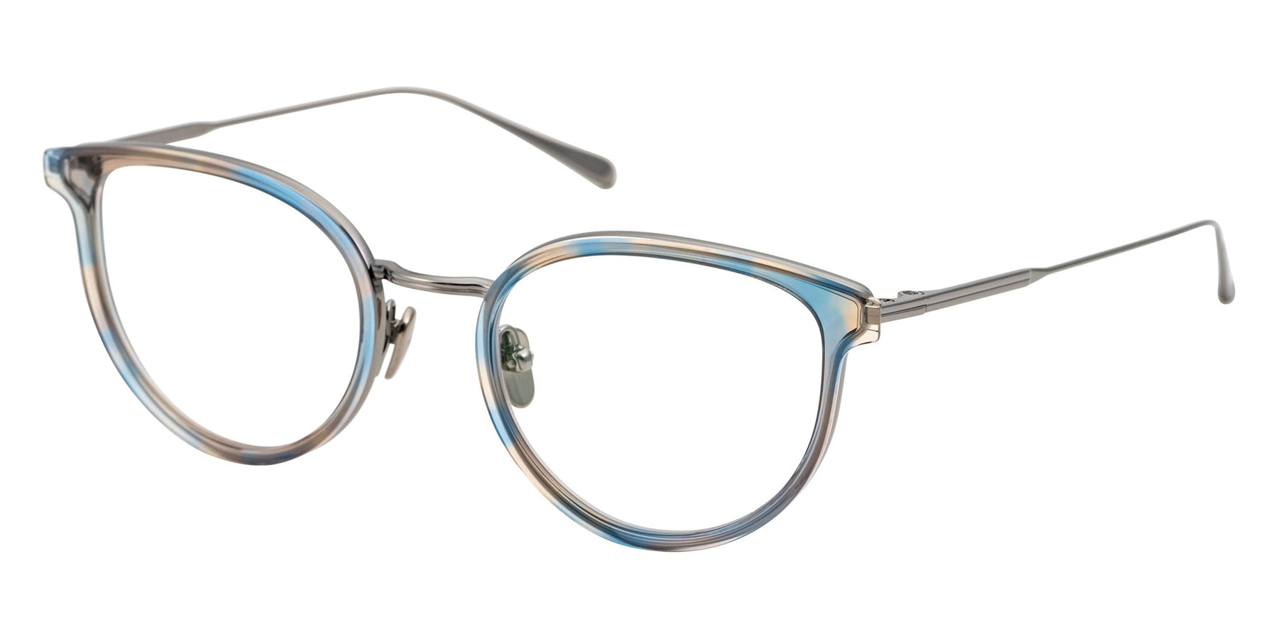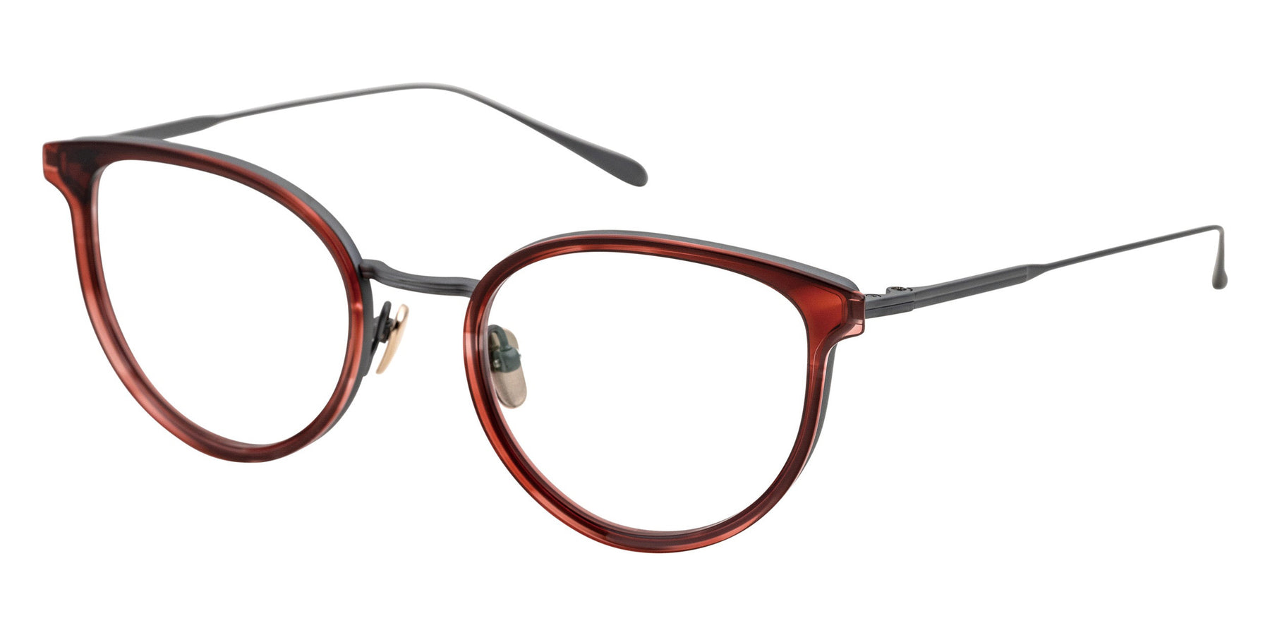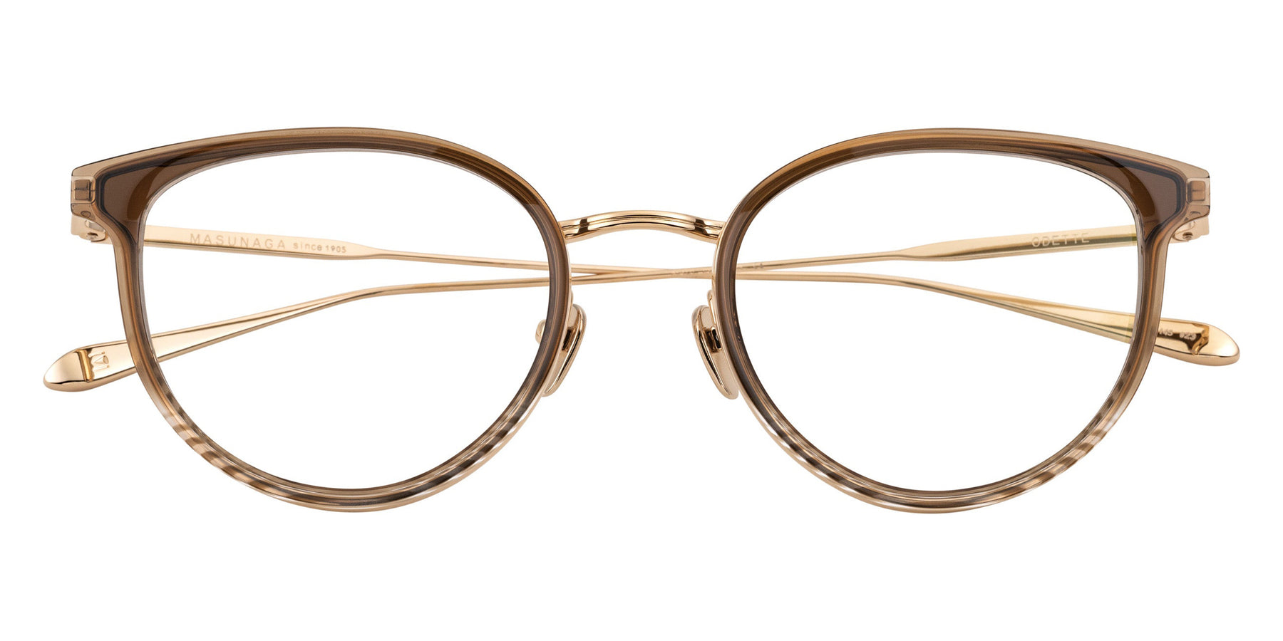 Masunaga® ODETTE Eyeglasses by Masunaga®. Color: 49 BK/GP, 37 RED/DGray, 23 BR/GP, 15 BL-BR/BK Silver, Size: 50-20-145. ODETTE is made of soft fox and gives an elegant impression. Yoroi's split-wisted structure has been designed with beautiful lines and is further reduced in weight. There are variations that highlight your individuality, such as refreshing and glossy colors.