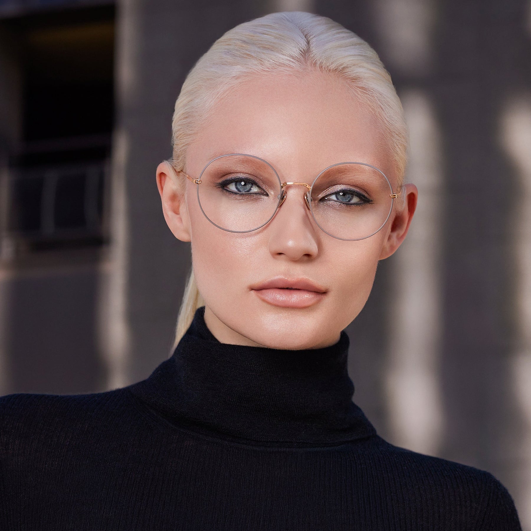 Masunaga® RONDE Eyeglasses by Masunaga®. Color: 39 BK/GP, 23 BR/PK GOLD, 14 Gray/GP, Size: 54-19-145. A large round shape with an exquisite balance. By passing the MASUNAGA filter, the round shape, which tends to be classic, has an elegant finish by paying attention to the silhouette, material and coloring.