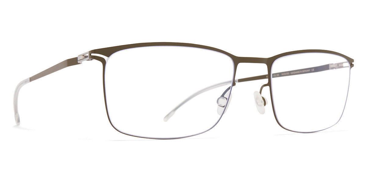 ERRKI Eyeglasses by Mykita®. Color: Camou Green / Shiny Graphite/Nearly Black / Silver/Navy, Gold/Jet Black, Size: 54-17-135. MYKITA glasses feature minimalist, elegant design, lightweight construction, and sophisticated details, which makes them perfect for people with a refined taste. There are no bold logos or any other luxury codes. Instead, much attention is paid to the construction, materials and surfaces. Each frame is an unbeatable mix of new technologies and traditional craftsmanship. All glasses are meticulously made of premium-grade stainless steel, acetate or MYLON by the most experienced artisans in Berlin.