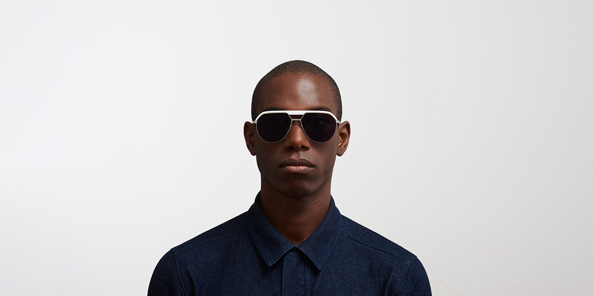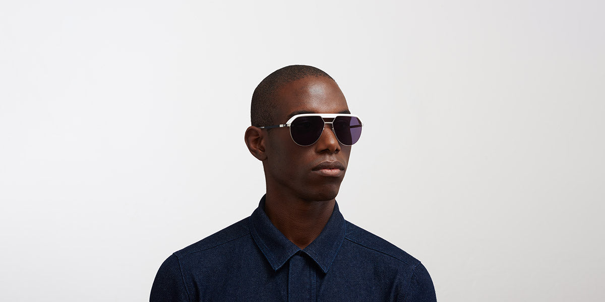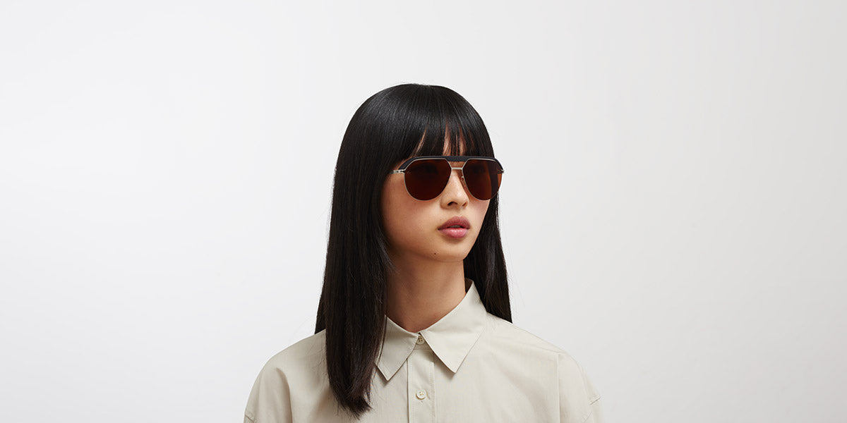 ML02 Sunglasses by Mykita®. Color: MH49 Pitch Black/Matte Silver / Leica Amber Solid, MH51 Safari Green/Graphite / Leica Brown Polarise, MH52 Signal White/Shiny Silver / Leica Black Solid, MH55 Leica Red/Black / Leica Black Solid, MH6 Pitch Black/Black / Leica Black Polarized, Size: 57-15-135. MYKITA glasses feature minimalist, elegant design, lightweight construction, and sophisticated details, which makes them perfect for people with a refined taste. There are no bold logos or any other luxury codes. Instead, much attention is paid to the construction, materials and surfaces. Each frame is an unbeatable mix of new technologies and traditional craftsmanship. All glasses are meticulously made of premium-grade stainless steel, acetate or MYLON by the most experienced artisans in Berlin.