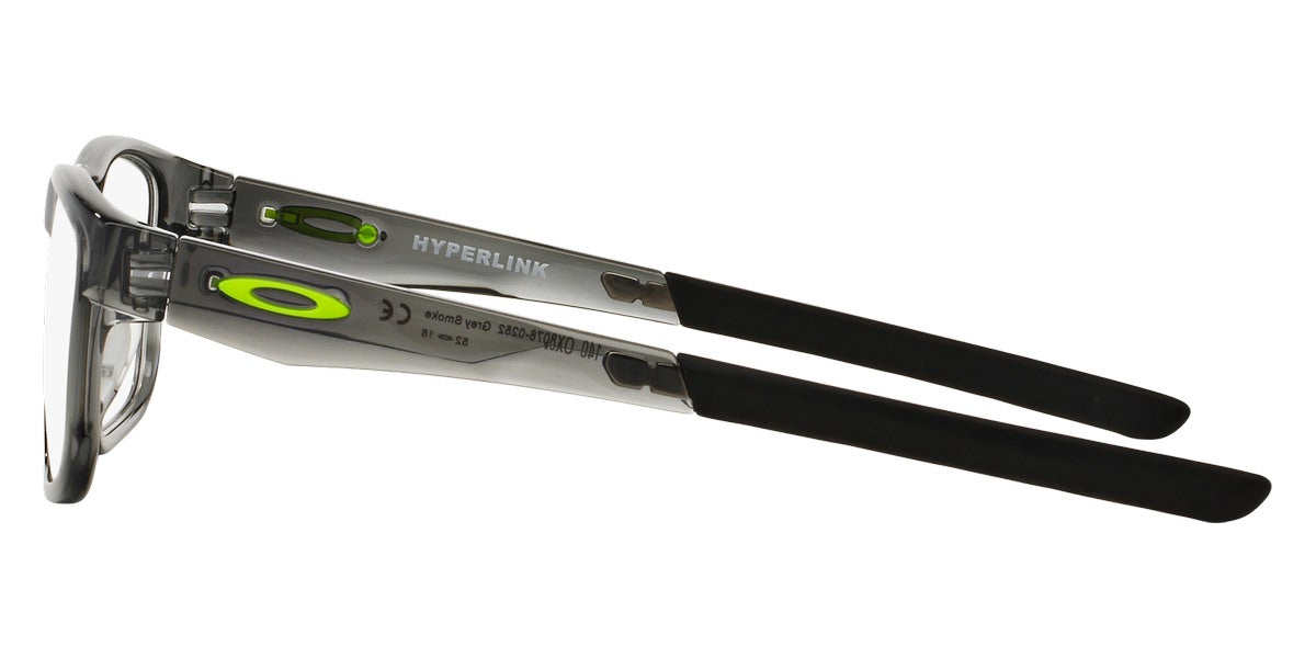 Hyperlink Eyeglasses by Oakley. Color: Gray Smoke,Satin Black,Satin Gray Smoke, Size: 52-18-140, Shape: Square. From casual optical styles to modern sporty shades in bright colors, the Oakley glasses feature unique design, patented technologies and exceptional fit. Born to push the boundaries of form and function, the frame is made from the lightweight, stress-resistant O Matter™ material that ensures durability and all-day comfort. The Three-Point Fit holds lenses in precise optical alignment while the Unobtainium® ear socks provide a no-slip grip. When it comes to lenses, they’re tested under extreme high mass and high velocity circumstances to ensure uncompromising protection across a wide range of demanding conditions. Featuring a go-anywhere design, these Oakley glasses are just perfect for those who take a straightforward approach to original style.