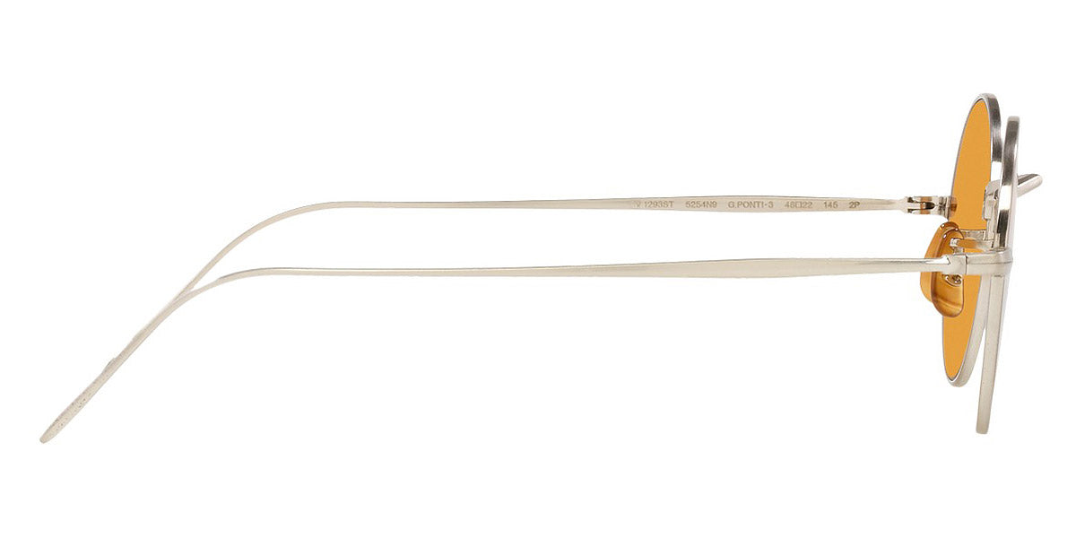 G. Ponti-3 by Oliver Peoples. Color: Soft Gold/Grey Goldtone, Bronze-copper/Burgundy, Soft Gold/Cobalto, Silver / Yellow Wash, Size: 48-22-145. Oliver Peoples glasses are unique, retro-inspired silhouettes with the ingenious spirit of Los Angeles. Each frame is a real work-of-art that demonstrates thoughtfulness in design and perfection in craft. Recognized by their meticulous attention to detail, Oliver Peoples creates stunning optical frames and sunglasses with intricate filigree accents and exquisite decorations. To create durable lenses with enhanced visual clarity, Oliver Peoples collaborates with Barberini®, the renowned lens producer. The result is a perfect combination of high-performance optical technology with timeless, yet advanced design.