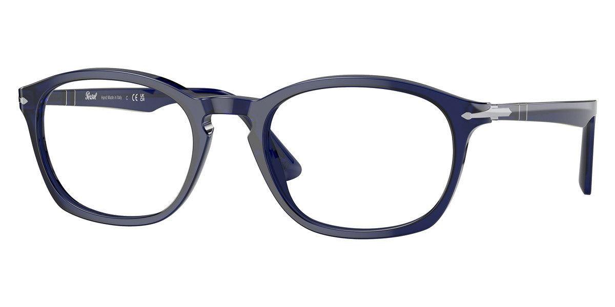 PO3303V Eyeglasses by Persol. Shape: Square, Material: Acetate, Frame Type: Full Rim, Color: 1103 Taupe Grey Transparent, 181 Blue, Size: 51-20-145, 53-20-145.