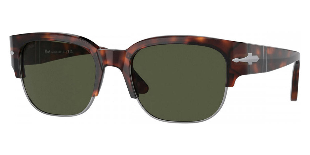 PO3319S Tom Sunglasses by Persol. Shape: Square, Material: Acetate, Frame Type: Full Rim, Color: 1071Gg Brown Tortoise / Transitions 8 Sapphire, 1071R5 Brown Tortoise / Blue, 108/48 Caffe / Polar Black, 24/31 Havana / Green, 95/M3 Black / Grey Gradient Polarized, Size: 52-20-145, 55-20-145.