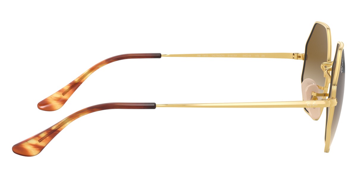 Octagon RB1972 Sunglasses by Ray-Ban. Color: Arista, Black, Silver Size: 54-19-145. The originator of the iconic eyewear pieces, Ray-Ban is synonymous with cool, hip and freedom of expression. The glasses feature a distinctive frame with strong character and modern appearance. Utilizing premium-grade, bio-based materials and latest technologies, Ray-Ban creates extremely comfortable spectacles with a perfect fit. The Ray-Ban sunglasses are equipped with high-end polarized lenses that block glare for improved clarity and contrast, while also offering 100% UVA and UVB protection to shield your eyes from the sun's rays.