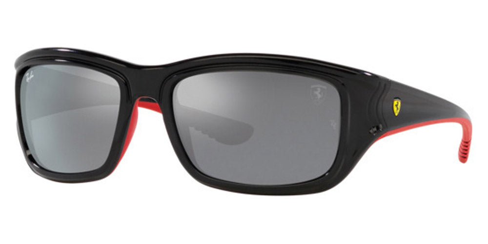 RB4405M Sunglasses by Ray-Ban. Color: Black, Red, Gray, Size: 59-19-130. The originator of the iconic eyewear pieces, Ray-Ban is synonymous with cool, hip and freedom of expression. The glasses feature a distinctive frame with strong character and modern appearance. Utilizing premium-grade, bio-based materials and latest technologies, Ray-Ban creates extremely comfortable spectacles with a perfect fit. The Ray-Ban sunglasses are equipped with high-end polarized lenses that block glare for improved clarity and contrast, while also offering 100% UVA and UVB protection to shield your eyes from the sun's rays.