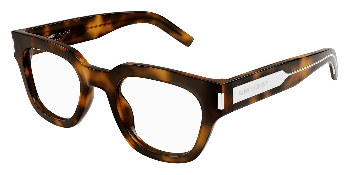 661 Eyeglasses by Saint Laurent. Color: Black/Crystal, Havana/Crystal, Size: 50-22-145, Material: Acetate