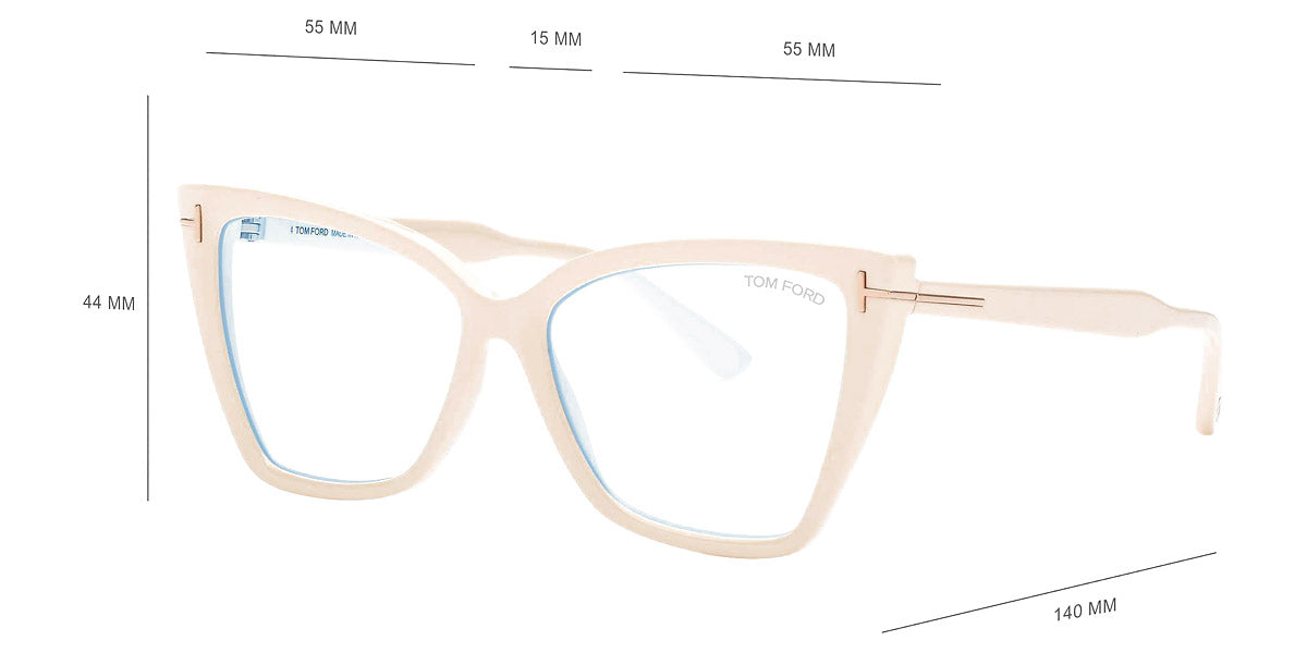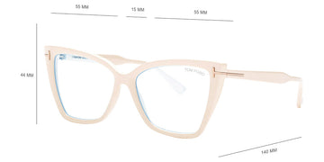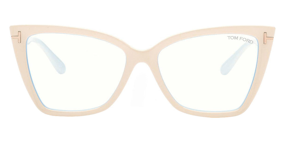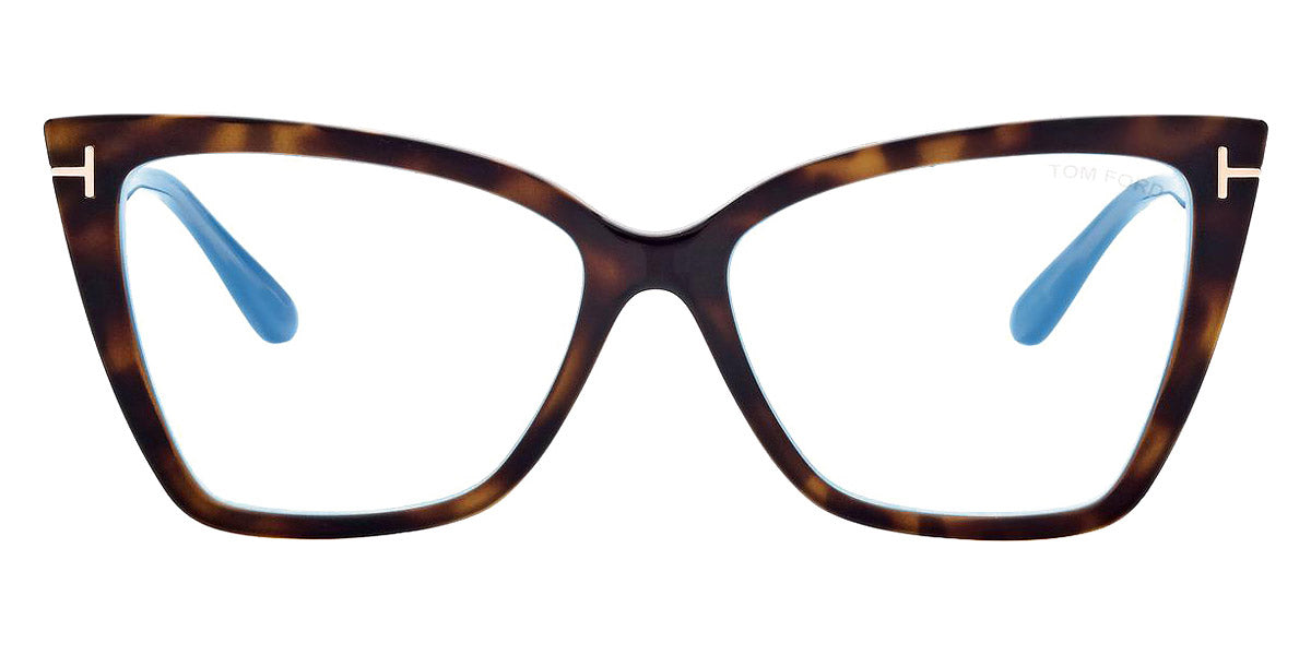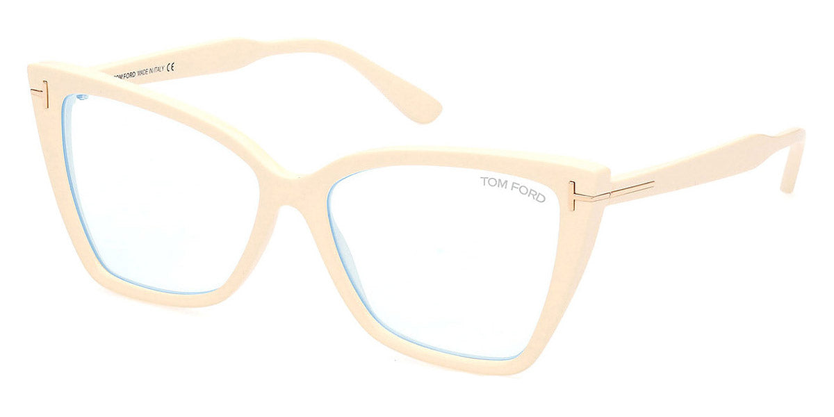 FT5844-B Eyeglasses by Tom Ford. Color: Shiny Ivory / t" Logo / Blue Block Lenses, Shiny Black / t" Logo / Blue Block Lenses, Matte Black / t" Logo / Blue Block Lenses, 052 - Dark Havana / Dark Havana. Size: 55-15-140.
