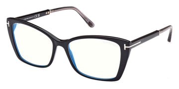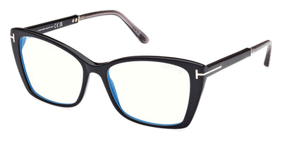 Tom Ford® FT5893-B FT5893-B 001 55 - 001 - Shiny Black, Shiny Rose Gold, t" Logo / Blue Block Lenses" Eyeglasses