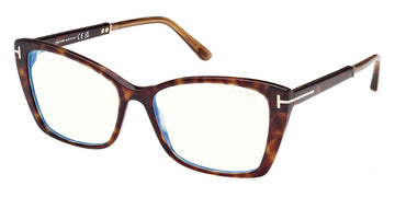 Tom Ford® FT5893-B FT5893-B 052 55 - 052 - Classic Dark Havana, Shiny Rose Gold, t" Logo / Blue Block Lenses" Eyeglasses