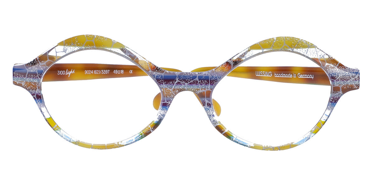 3100 L Eyeglasses by Wissing . Boldness and exclusiveness are those distinguishing features that have always characterized Wissing. The reputed German brand creates one-off, unmistakable pieces of art, handcrafted from multi-layer acetate, which means endless possibilities for eyewear design. Each Wissing frame features a distinctive shape and comes offered in bright, eye-catching color combinations.