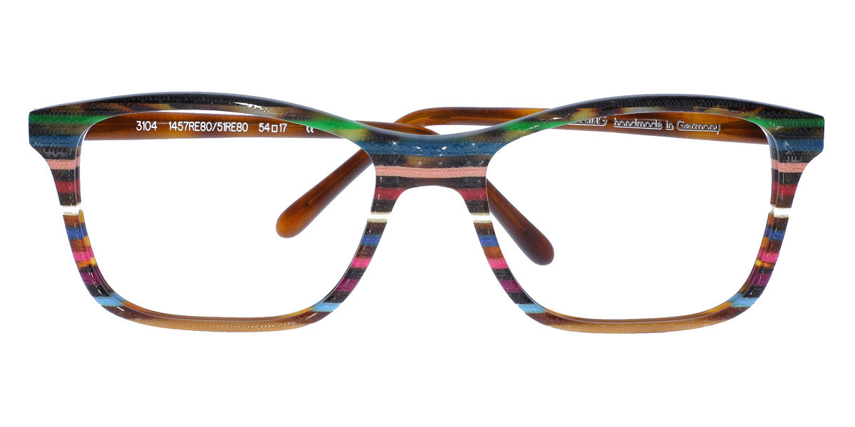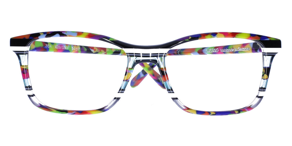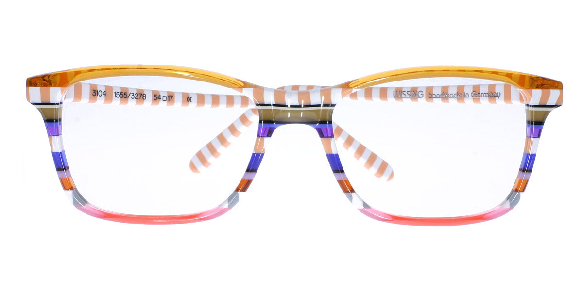 3104 Eyeglasses by Wissing . Boldness and exclusiveness are those distinguishing features that have always characterized Wissing. The reputed German brand creates one-off, unmistakable pieces of art, handcrafted from multi-layer acetate, which means endless possibilities for eyewear design. Each Wissing frame features a distinctive shape and comes offered in bright, eye-catching color combinations.