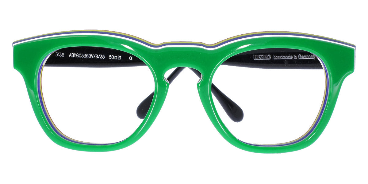 3136 M Eyeglasses by Wissing . Boldness and exclusiveness are those distinguishing features that have always characterized Wissing. The reputed German brand creates one-off, unmistakable pieces of art, handcrafted from multi-layer acetate, which means endless possibilities for eyewear design. Each Wissing frame features a distinctive shape and comes offered in bright, eye-catching color combinations.