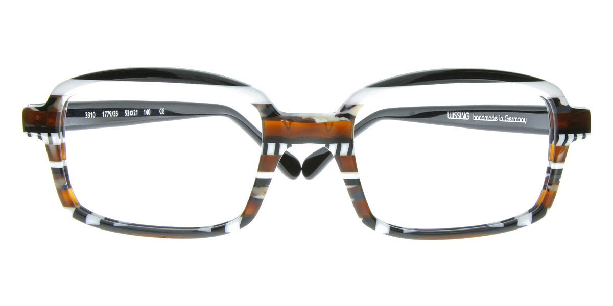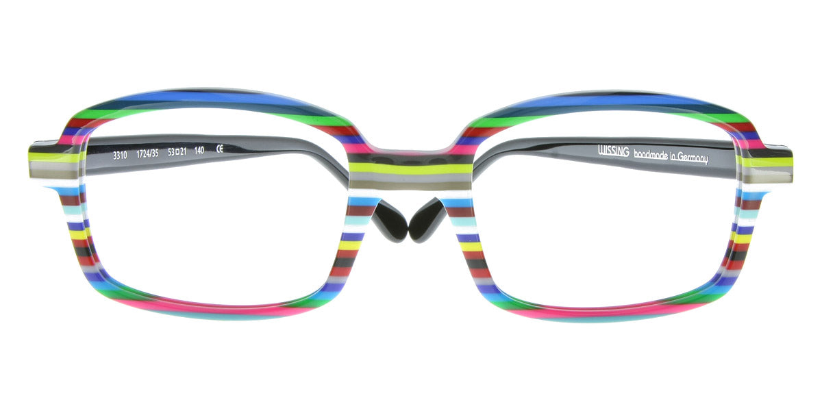 3310 Eyeglasses by Wissing . Boldness and exclusiveness are those distinguishing features that have always characterized Wissing. The reputed German brand creates one-off, unmistakable pieces of art, handcrafted from multi-layer acetate, which means endless possibilities for eyewear design. Each Wissing frame features a distinctive shape and comes offered in bright, eye-catching color combinations.