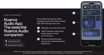 Nuance Audio introduces a groundbreaking solution for those seeking seamless vision and hearing enhancement. As the first Software as a Medical Device (SaMD) to receive FDA clearance in the U.S., Nuance Audio Smart Hearing Glasses eliminate the discomfort of wearing both a hearing aid and traditional eyewear. Their sleek design integrates advanced open-ear hearing technology, ensuring a natural and unobstructed listening experience. It’s a unique product that delivers both clear vision and enhanced hearing - effortlessly and elegantly.