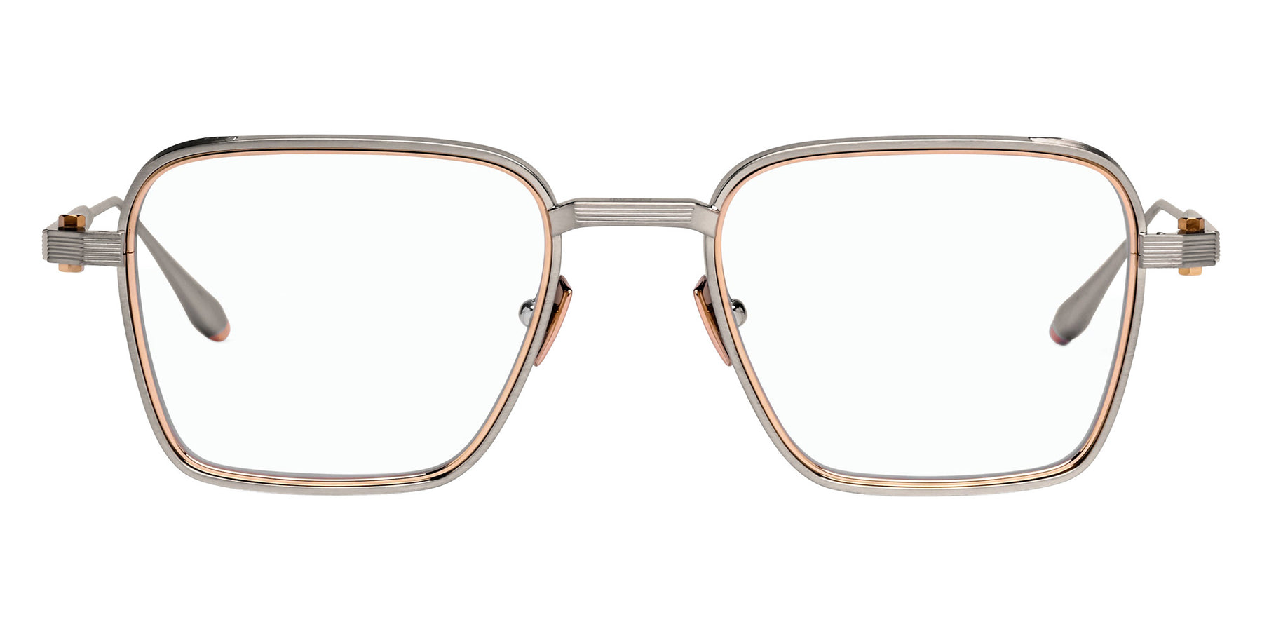 Giano Eyeglasses by Akoni. Color: Brushed 12k Gold with Silver, Antique Silver with 12k Gold, Black with 12k Gold, Size: 50-20-145, Material: Titanium