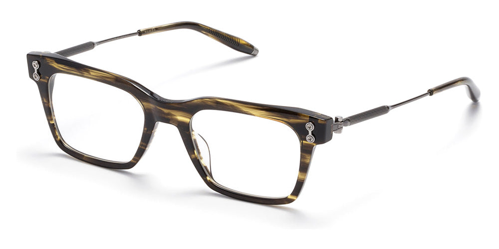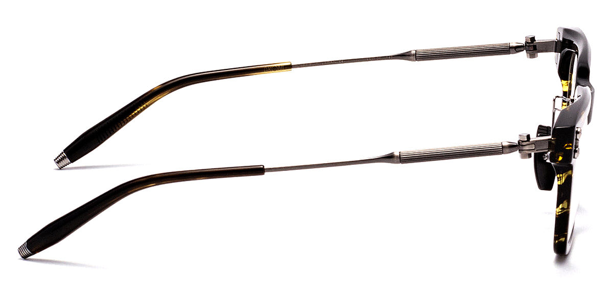 Kepler Eyeglasses by AKONI. Color: Black, Dark Tortoise, Olive, Size: 49-20-142, 52-20-147. If you're looking for eyewear that oozes luxury and intelligence, Akoni is one of the most impressive brands out there. Their focus on design, materials, finishes and functionality continues to push the envelope, delivering eyewear that is not only visually appealing, but also impeccably crafted. The frame masterfully blends a classic shape with bold lines for a look that's both confident and sophisticated. Much like a refreshing departure from the conventional styles typically found in eyewear. Look no further than EuroOptica for the stunning, uniquely modern Akoni frame.