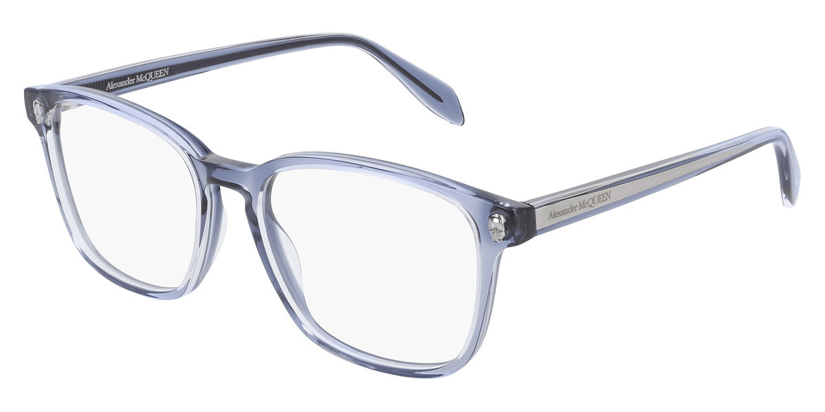 AM0244O Eyeglasses by Alexander McQueen. Color: Gray, Beige, Blue, Size: 53-17-145. The Alexander McQueen eyewear pieces are must haves for anyone who wants to stand out from the crowd, yet without being exorbitant and retaining a certain air of refinement. Each pair of sunglasses and optical frames is embellished with luxury details, such as skulls, studs and bugs that make the difference on every outfit, succeeding even to upgrade the simplest looks. Masterfully crafted in Italy from the highest grade materials, the McQueen’s glasses meet the needs of the most demandable clients. Lady Gaga, Michelle Obama and Cate Blanchett are among the brand’s most loyal fans. All Alexander McQueen Eyewear is 100% certified UV protective (UVA and UVB rays).