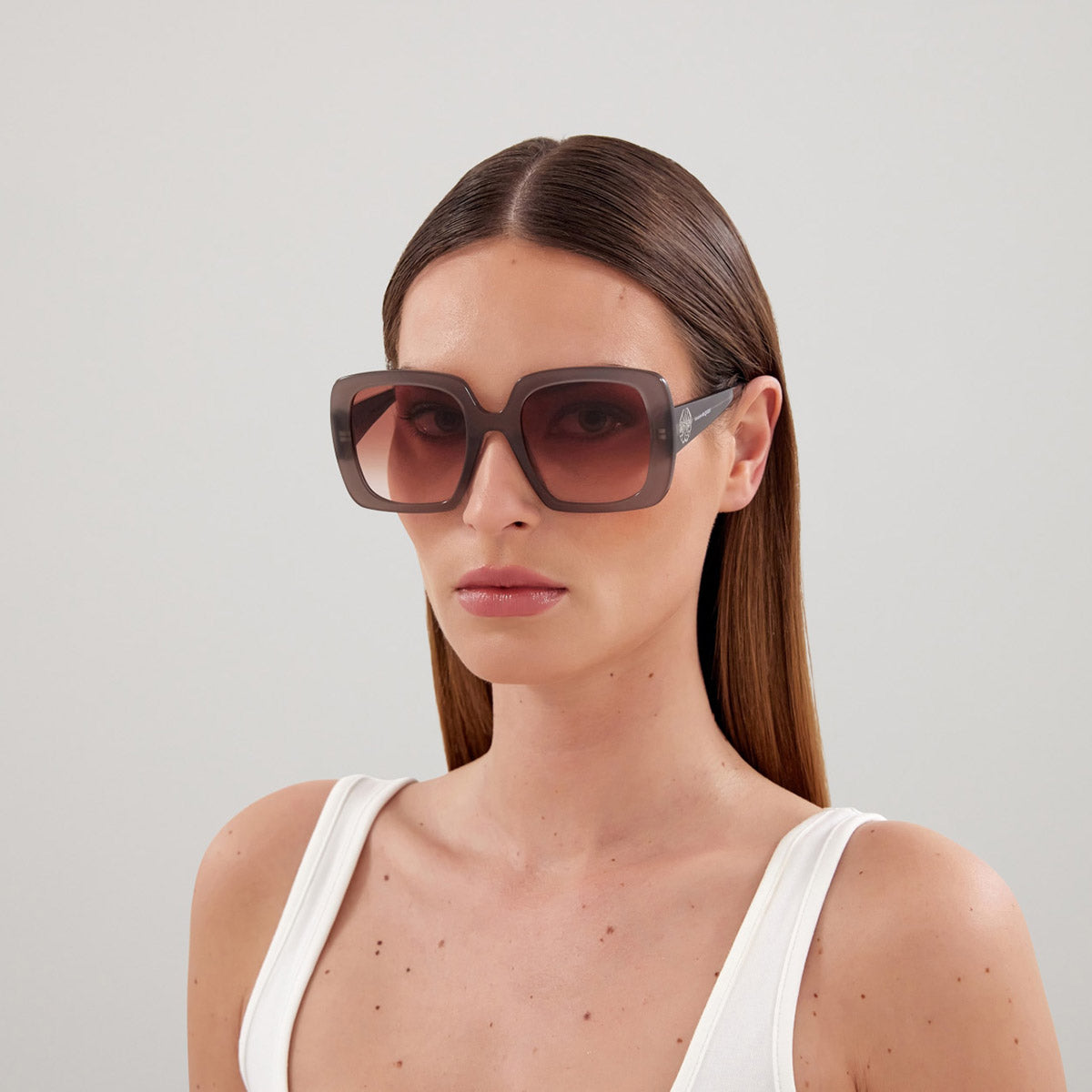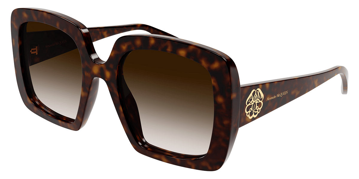 AM0378S Sunglasses by Alexander McQueen. Color: Black, Havana, Gray, Size: 54-22-145. The Alexander McQueen eyewear pieces are must haves for anyone who wants to stand out from the crowd, yet without being exorbitant and retaining a certain air of refinement. Each pair of sunglasses and optical frames is embellished with luxury details, such as skulls, studs and bugs that make the difference on every outfit, succeeding even to upgrade the simplest looks. Masterfully crafted in Italy from the highest grade materials, the McQueen’s glasses meet the needs of the most demandable clients. Lady Gaga, Michelle Obama and Cate Blanchett are among the brand’s most loyal fans. All Alexander McQueen Eyewear is 100% certified UV protective (UVA and UVB rays).