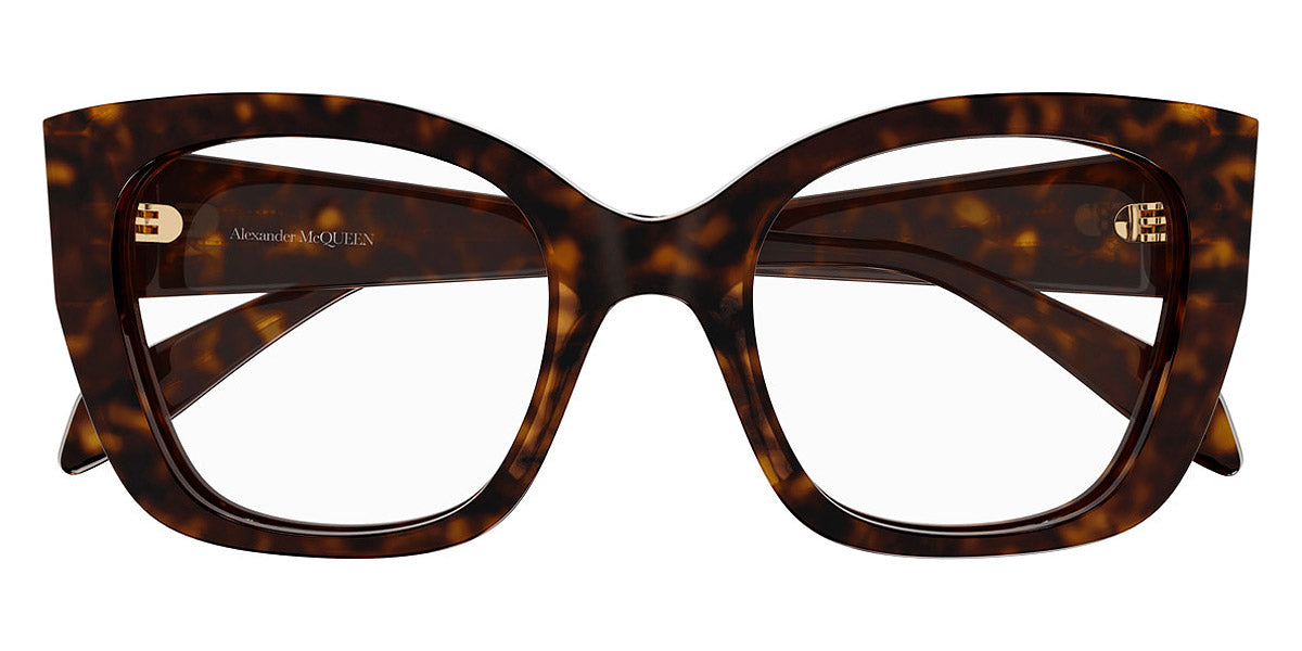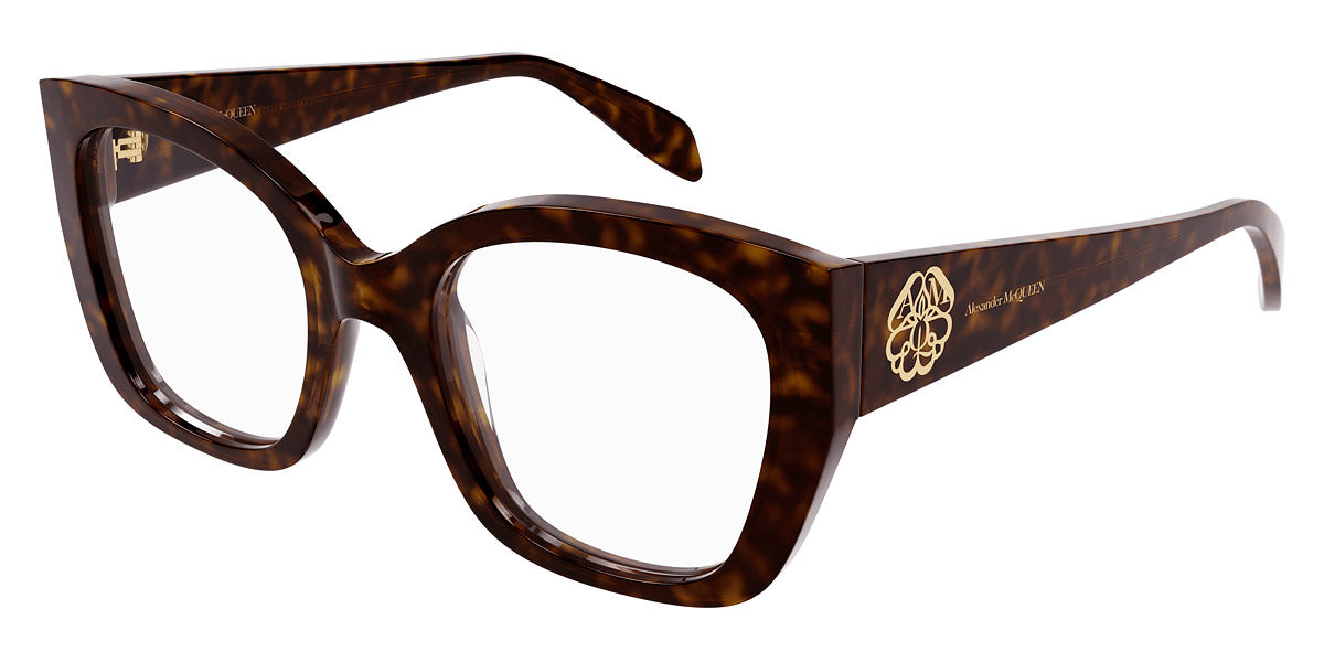 AM0379O Eyeglasses by Alexander McQueen. Color: Black, Havana, Gray, Size: 52-21-145. The Alexander McQueen eyewear pieces are must haves for anyone who wants to stand out from the crowd, yet without being exorbitant and retaining a certain air of refinement. Each pair of sunglasses and optical frames is embellished with luxury details, such as skulls, studs and bugs that make the difference on every outfit, succeeding even to upgrade the simplest looks. Masterfully crafted in Italy from the highest grade materials, the McQueen’s glasses meet the needs of the most demandable clients. Lady Gaga, Michelle Obama and Cate Blanchett are among the brand’s most loyal fans. All Alexander McQueen Eyewear is 100% certified UV protective (UVA and UVB rays).