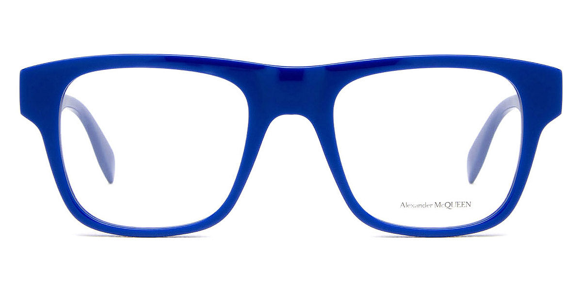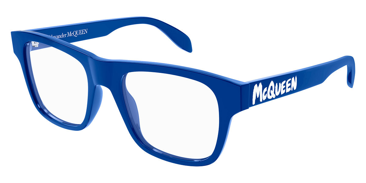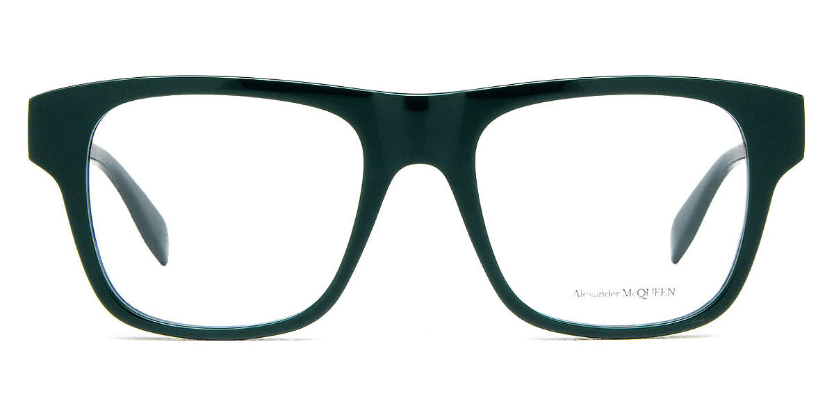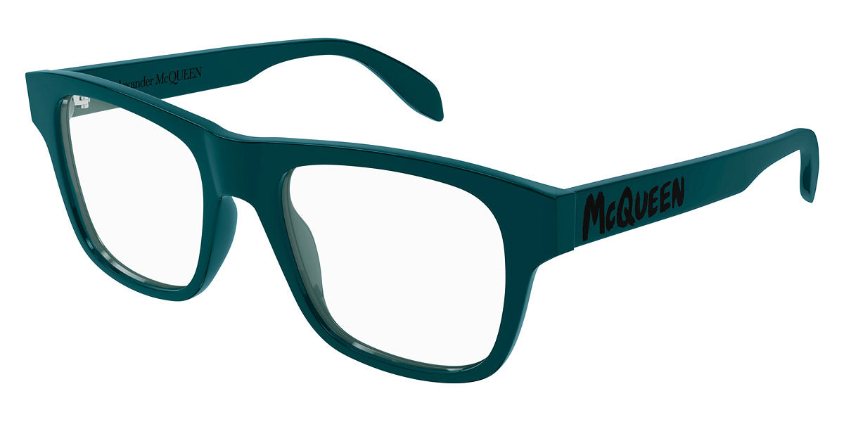 AM0389O Eyeglasses by Alexander McQueen. Color: Black, Green, Blue, Size: 52-19-145. The Alexander McQueen eyewear pieces are must haves for anyone who wants to stand out from the crowd, yet without being exorbitant and retaining a certain air of refinement. Each pair of sunglasses and optical frames is embellished with luxury details, such as skulls, studs and bugs that make the difference on every outfit, succeeding even to upgrade the simplest looks. Masterfully crafted in Italy from the highest grade materials, the McQueen’s glasses meet the needs of the most demandable clients. Lady Gaga, Michelle Obama and Cate Blanchett are among the brand’s most loyal fans. All Alexander McQueen Eyewear is 100% certified UV protective (UVA and UVB rays).