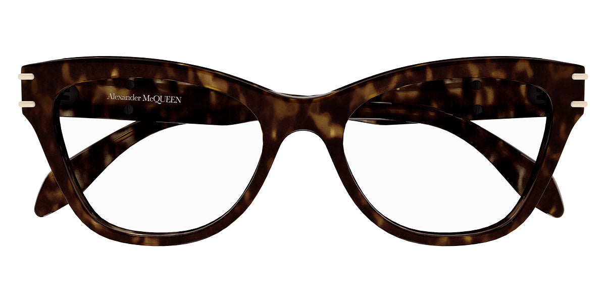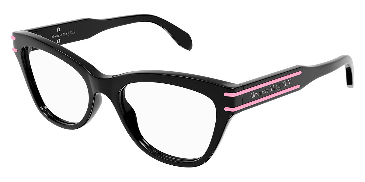 AM0401O Eyeglasses by Alexander McQueen. Color: Black / Pink, Havana, Black / Gray, Size: 53-18-140. The Alexander McQueen eyewear pieces are must haves for anyone who wants to stand out from the crowd, yet without being exorbitant and retaining a certain air of refinement. Each pair of sunglasses and optical frames is embellished with luxury details, such as skulls, studs and bugs that make the difference on every outfit, succeeding even to upgrade the simplest looks. Masterfully crafted in Italy from the highest grade materials, the McQueen’s glasses meet the needs of the most demandable clients. Lady Gaga, Michelle Obama and Cate Blanchett are among the brand’s most loyal fans. All Alexander McQueen Eyewear is 100% certified UV protective (UVA and UVB rays).