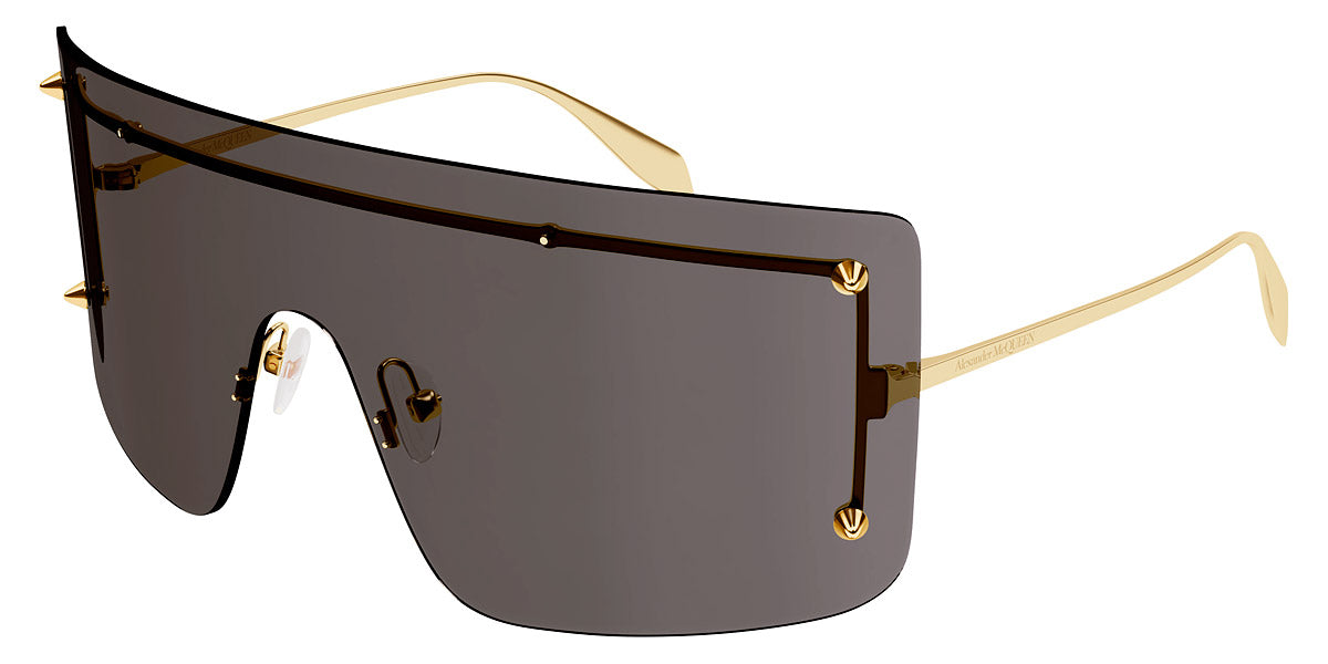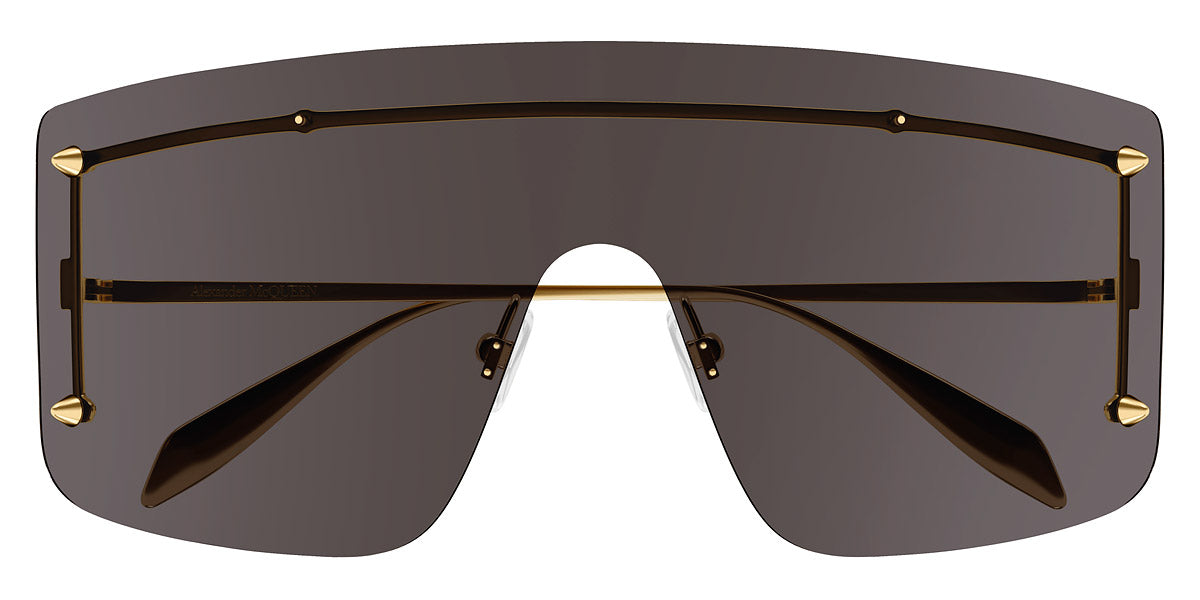 AM0412S Sunglasses by Alexander McQueen. Color: Gold / Brown Lenses, Size: 99-1-130. The Alexander McQueen eyewear pieces are must haves for anyone who wants to stand out from the crowd, yet without being exorbitant and retaining a certain air of refinement. Each pair of sunglasses and optical frames is embellished with luxury details, such as skulls, studs and bugs that make the difference on every outfit, succeeding even to upgrade the simplest looks. Masterfully crafted in Italy from the highest grade materials, the McQueen’s glasses meet the needs of the most demandable clients. Lady Gaga, Michelle Obama and Cate Blanchett are among the brand’s most loyal fans. All Alexander McQueen Eyewear is 100% certified UV protective (UVA and UVB rays).