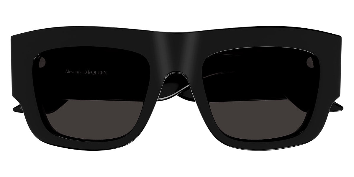 AM0449S Sunglasses by Alexander McQueen. Color: Black / Gray, Size: 53-20-145. The Alexander McQueen eyewear pieces are must haves for anyone who wants to stand out from the crowd, yet without being exorbitant and retaining a certain air of refinement. Each pair of sunglasses and optical frames is embellished with luxury details, such as skulls, studs and bugs that make the difference on every outfit, succeeding even to upgrade the simplest looks. Masterfully crafted in Italy from the highest grade materials, the McQueen’s glasses meet the needs of the most demandable clients. Lady Gaga, Michelle Obama and Cate Blanchett are among the brand’s most loyal fans. All Alexander McQueen Eyewear is 100% certified UV protective (UVA and UVB rays).