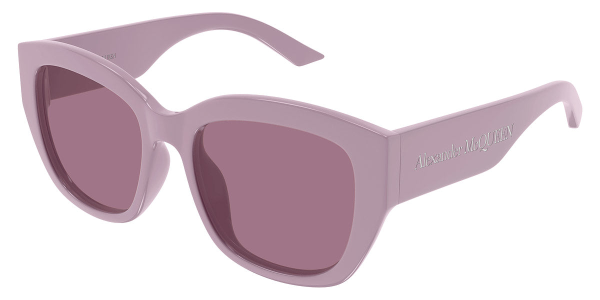 AM0451SA Sunglasses by Alexander McQueen. Color: Pink, Size: 55-19-145. The Alexander McQueen eyewear pieces are must haves for anyone who wants to stand out from the crowd, yet without being exorbitant and retaining a certain air of refinement. Each pair of sunglasses and optical frames is embellished with luxury details, such as skulls, studs and bugs that make the difference on every outfit, succeeding even to upgrade the simplest looks. Masterfully crafted in Italy from the highest grade materials, the McQueen’s glasses meet the needs of the most demandable clients. Lady Gaga, Michelle Obama and Cate Blanchett are among the brand’s most loyal fans. All Alexander McQueen Eyewear is 100% certified UV protective (UVA and UVB rays).
