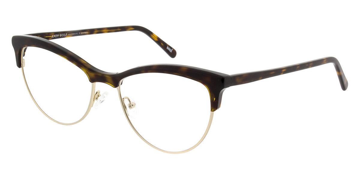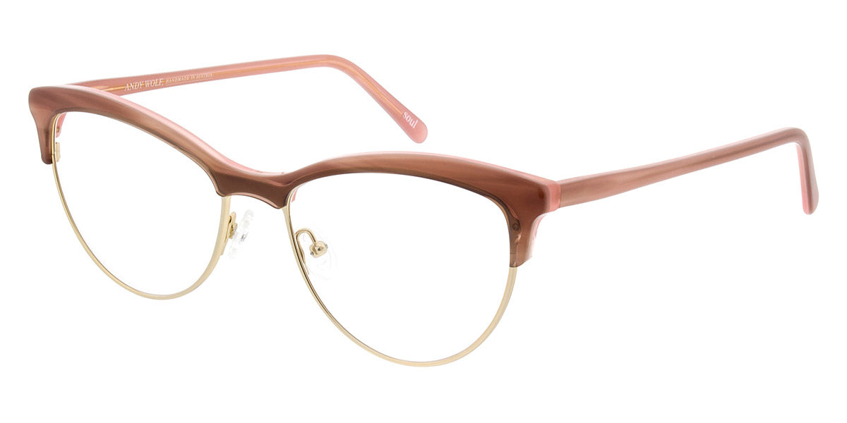 5081 Eyeglasses by Andy Wolf. Color: Black/Silver A, Brown/Gold B, Gray/Gold D, Pink/Gold C, Teal/Gold E, Size: 53-17-140.