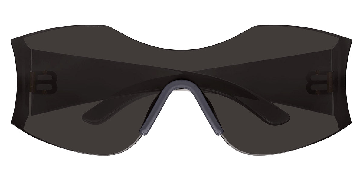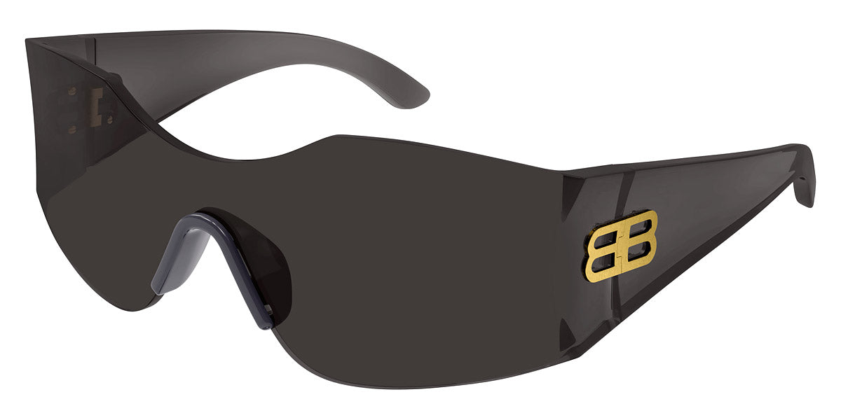 BB0292S Sunglasses by Balenciaga. Color: Gray / Gray Lenses, Size: 99-1-120. The Balenciaga Eyewear collections consist of sunglasses and eyeglasses frames that combine a simple new style with the fashion house's desire to be inspired by technological innovation in its shapes and silhouettes. They embody revolutionary trends and fashionable realism. All models of glasses are marked with the brand's corporate logo, interpreted in their own way in different styles. The black double monogram "B" is set on transparent nose pads, creating a floating and weightless effect. The logo of the brand's sunglasses is applied to the mirror coating, which in different variations is always presented on the left temple. Extraordinary designs and unconventional materials mixed with more classic ones make Balenciaga eyewear unique and easily recognizable.