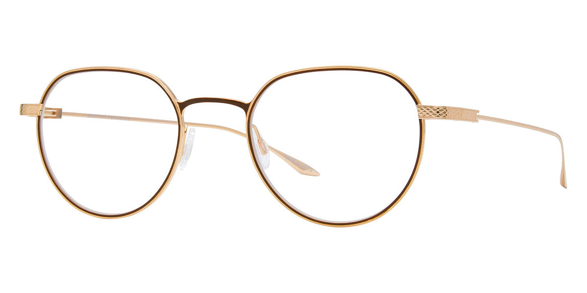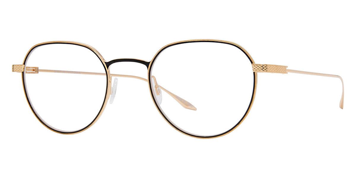 Ebbets Eyeglasses by Barton Perreira. Shape: Round, Material: Titanium, Color: Gold/Antique Gold, Silver/Pewter, Matte Java/Antique Gold, Gold/Black Satin, Matte Navy/Pewter, Size: 49-21-145. Meticulously crafted by hand in Japan, a single pair of Barton Perreira frames is a real work-of-art with exquisite details and stunning silhouettes. Every facet and every angle of Barton Perreira glasses is brought to life with virtuosity and precision. Made from the premium-grade Japanese acetate and titanium, they fit like a tailored suit. In addition, the frames are wired with an adjustable foundation to align perfectly with the wearer’s face, while maintaining its shape.