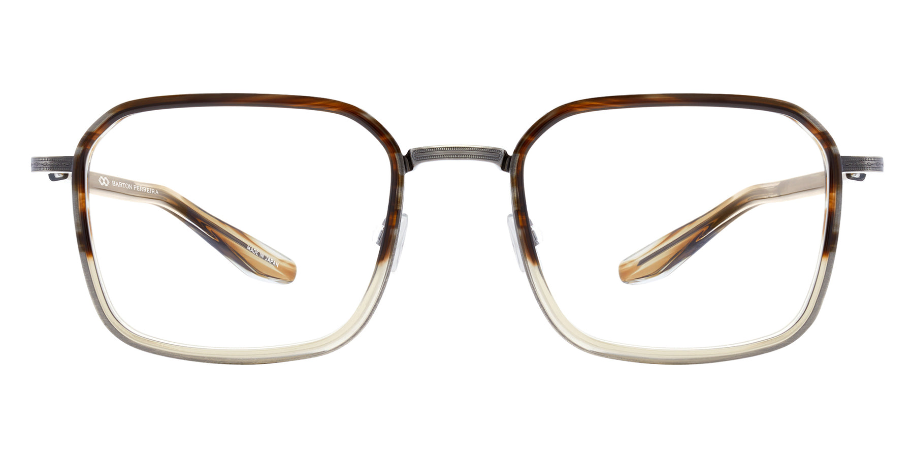 Barton Perreira® Euclid Eyeglasses by Barton Perreira. Color:Black/Clear/Black/Pewter/Demo, Absinthe/Clear/Chestnut/Antique Gold/Demo, Hickory Gradient /Clear/Hickory Gradie/Demo. Size: 53-20-150