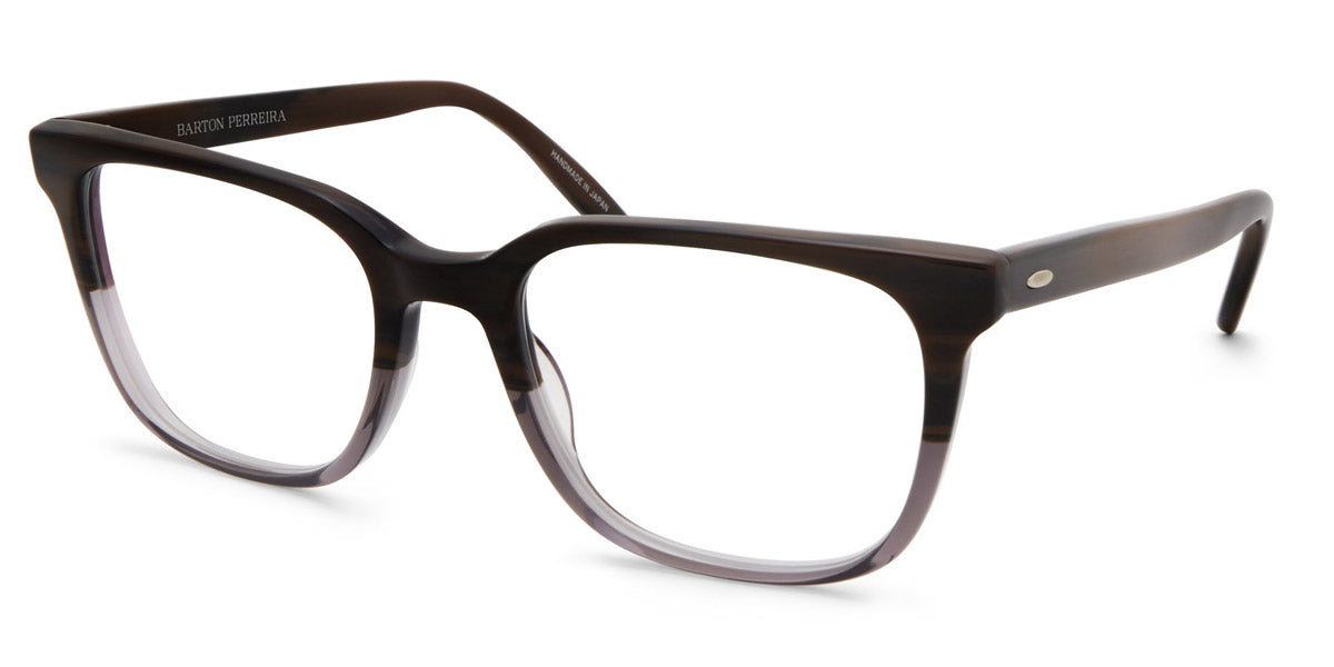 Joe Eyeglasses by Barton Perreira. Shape: Square, Material: Acetate, Color: Black, Chestnut, Crystal, Dusk, Matte Black Amber Tortoise, Matte Flint Stone Gradient, Matte Midnight, Mudslide, Size: 52-20-148. Meticulously crafted by hand in Japan, a single pair of Barton Perreira frames is a real work-of-art with exquisite details and stunning silhouettes. Every facet and every angle of Barton Perreira glasses is brought to life with virtuosity and precision. Made from the premium-grade Japanese acetate and titanium, they fit like a tailored suit. In addition, the frames are wired with an adjustable foundation to align perfectly with the wearer’s face, while maintaining its shape.