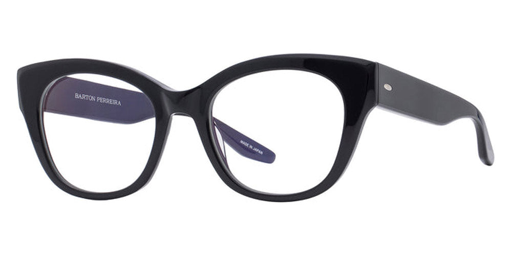 Lucretia Eyeglasses by Barton Perreira. Shape: Cat-Eye, Material: Zyl, Color: Clover, Sulcata Tortoise, Mocha, Cabernet Tortoise, Desert Sky, Black, Size: 51-20-145. Meticulously crafted by hand in Japan, a single pair of Barton Perreira frames is a real work-of-art with exquisite details and stunning silhouettes. Every facet and every angle of Barton Perreira glasses is brought to life with virtuosity and precision. Made from the premium-grade Japanese acetate and titanium, they fit like a tailored suit. In addition, the frames are wired with an adjustable foundation to align perfectly with the wearer’s face, while maintaining its shape.