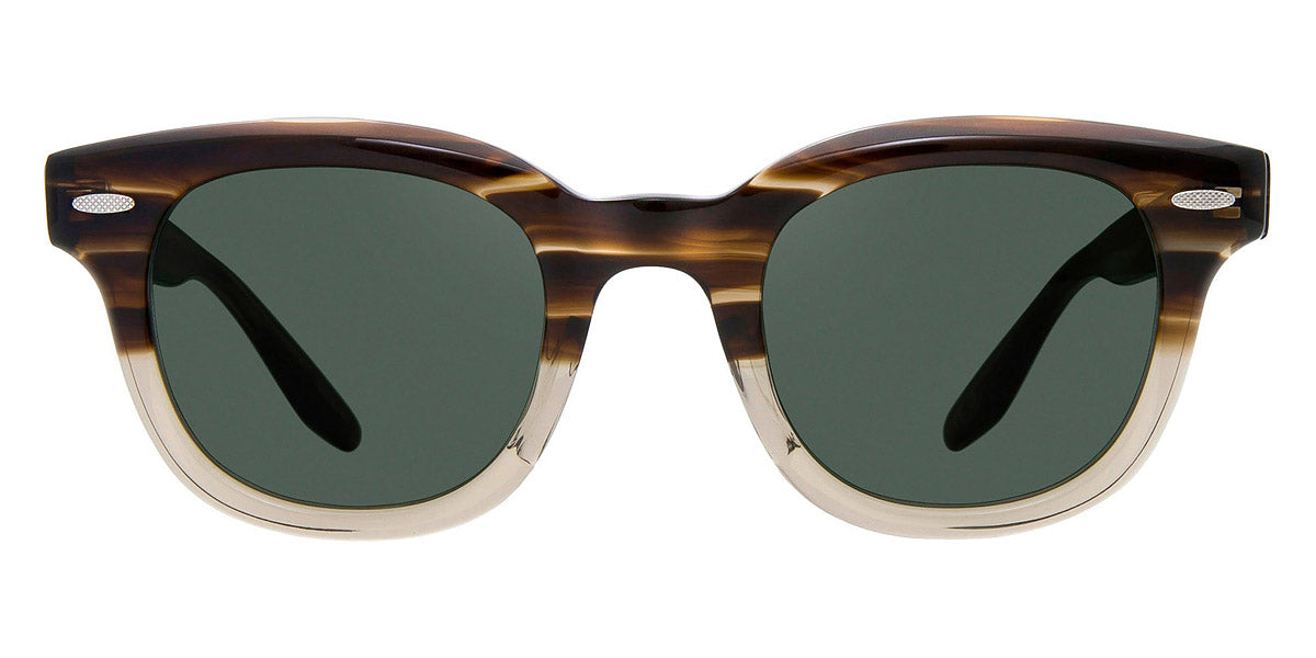 Norwell Sun Sunglasses by Barton Perreira. Shape: Square, Material: Zyl, Color: Black / Green Smoke AR, Hickory Gradient / Green Smoke AR, Absinthe / Espresso AR, Size: 46-23-148. Meticulously crafted by hand in Japan, a single pair of Barton Perreira frames is a real work-of-art with exquisite details and stunning silhouettes. Every facet and every angle of Barton Perreira glasses is brought to life with virtuosity and precision. Made from the premium-grade Japanese acetate and titanium, they fit like a tailored suit. In addition, the frames are wired with an adjustable foundation to align perfectly with the wearer’s face, while maintaining its shape.