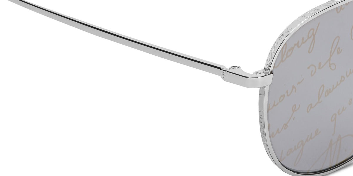 If you love aviators and wish your new pair of sunglasses to feature a modern design, the Glint Scritto by Berluti is just what you need! The all-metal aviator frame features a double-bridge, slim handles and lasered Scritto all around the rim, which gives a unique modern touch to this legendary silhouette. The mirror Scritto lenses has the iconic “1895” logo, which also brings a subtle dose of extravagance over a classic base.