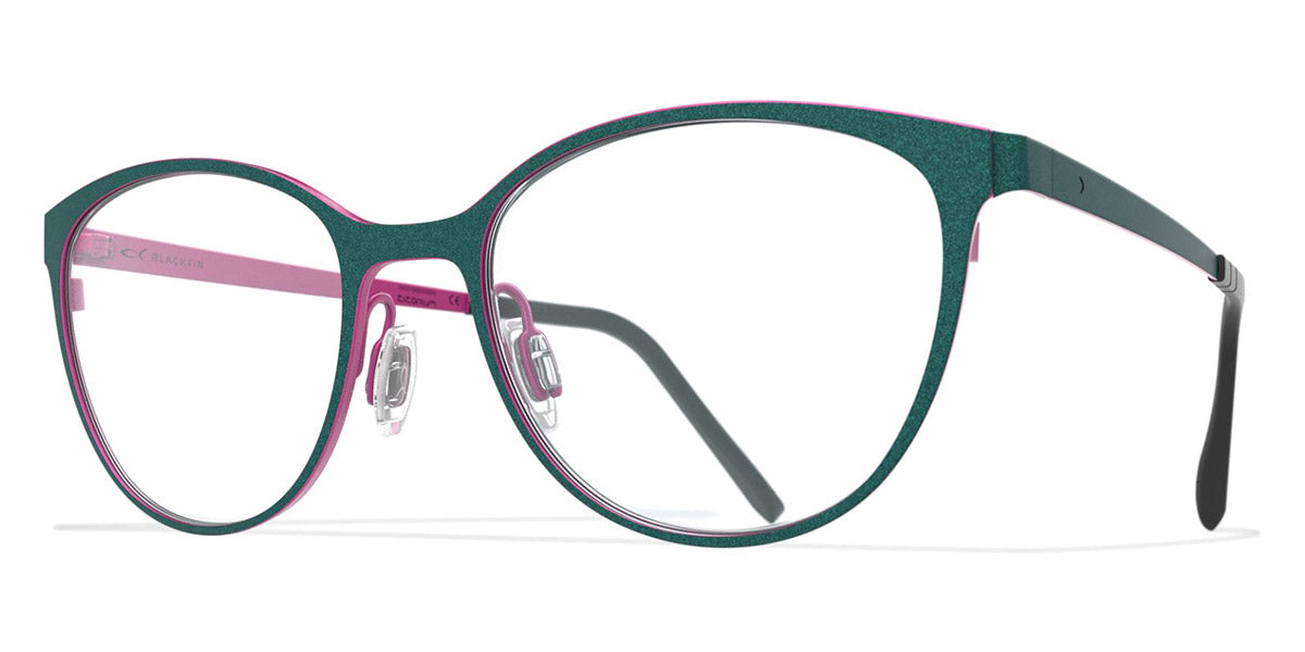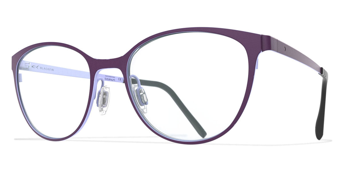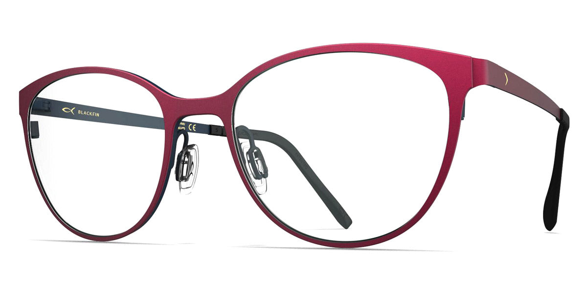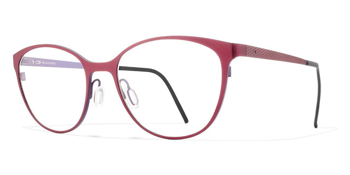 WINDSOR Eyeglasses by Blackfin. Color: Blue/Pink, Green/Light Blue, Green/Purple, Magenta-Brown Gradient/Magenta, Purple/Lavender, Red/Plum, Brown/Titanium, Size: 50-17-135. Blackfin's Windsor eyeglasses exude timeless charm and refined elegance. Drawing inspiration from classic British style, these frames offer a perfect blend of traditional aesthetics and modern craftsmanship. The Windsor model caters to those who appreciate understated luxury and impeccable taste in their eyewear choices. With attention to detail and a focus on quality, these glasses are designed to enhance the wearer's natural features while providing exceptional visual clarity. The Windsor frames are an excellent choice for professionals and style enthusiasts alike, offering a distinguished look that stands the test of time.
