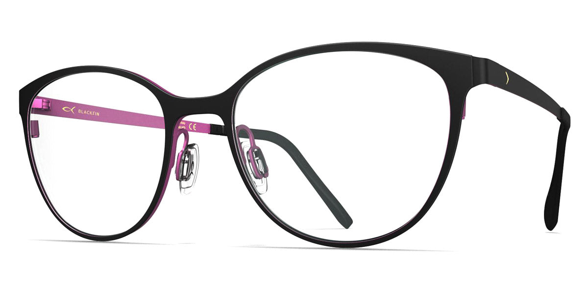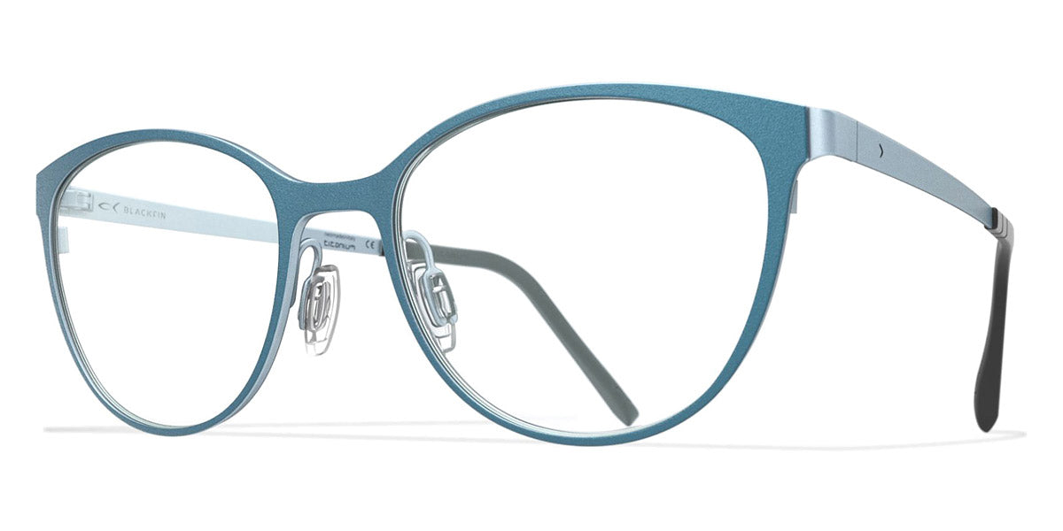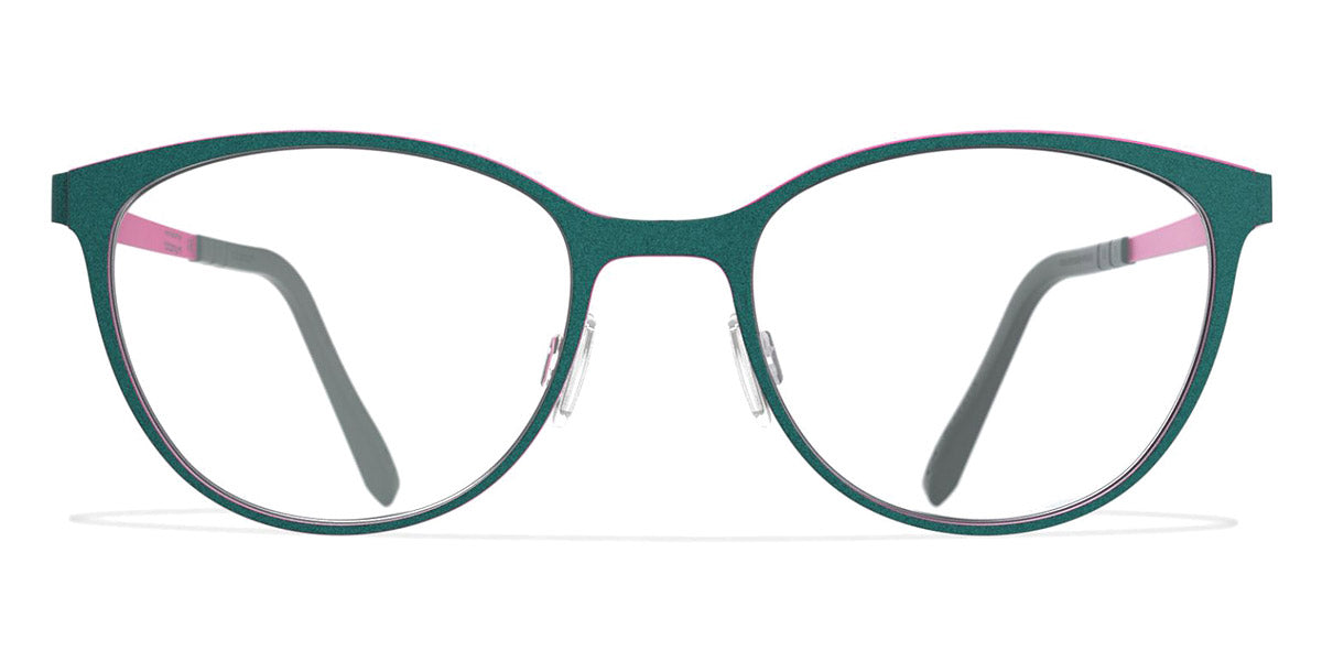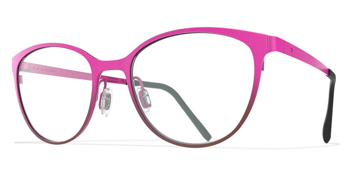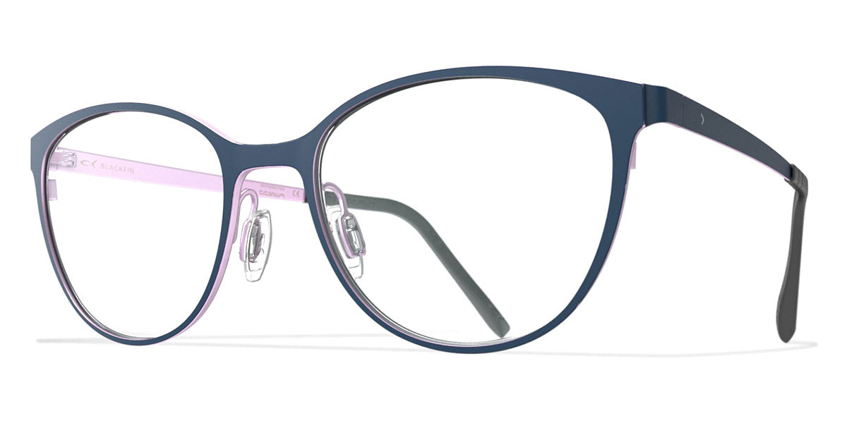 WINDSOR Eyeglasses by Blackfin. Color: Blue/Pink, Green/Light Blue, Green/Purple, Magenta-Brown Gradient/Magenta, Purple/Lavender, Red/Plum, Brown/Titanium, Size: 50-17-135. Blackfin's Windsor eyeglasses exude timeless charm and refined elegance. Drawing inspiration from classic British style, these frames offer a perfect blend of traditional aesthetics and modern craftsmanship. The Windsor model caters to those who appreciate understated luxury and impeccable taste in their eyewear choices. With attention to detail and a focus on quality, these glasses are designed to enhance the wearer's natural features while providing exceptional visual clarity. The Windsor frames are an excellent choice for professionals and style enthusiasts alike, offering a distinguished look that stands the test of time.