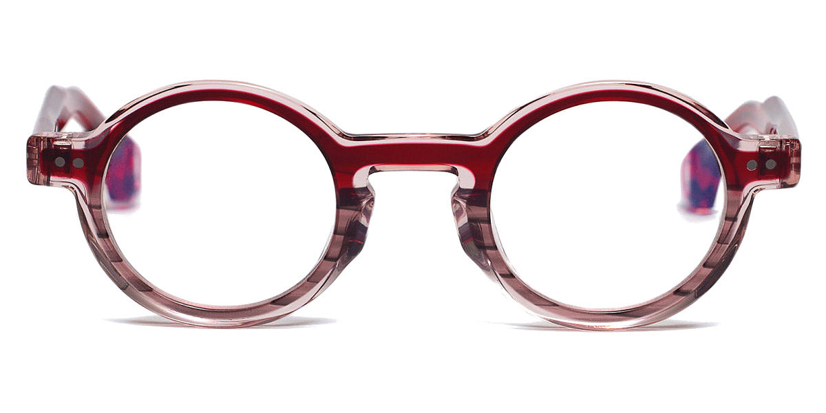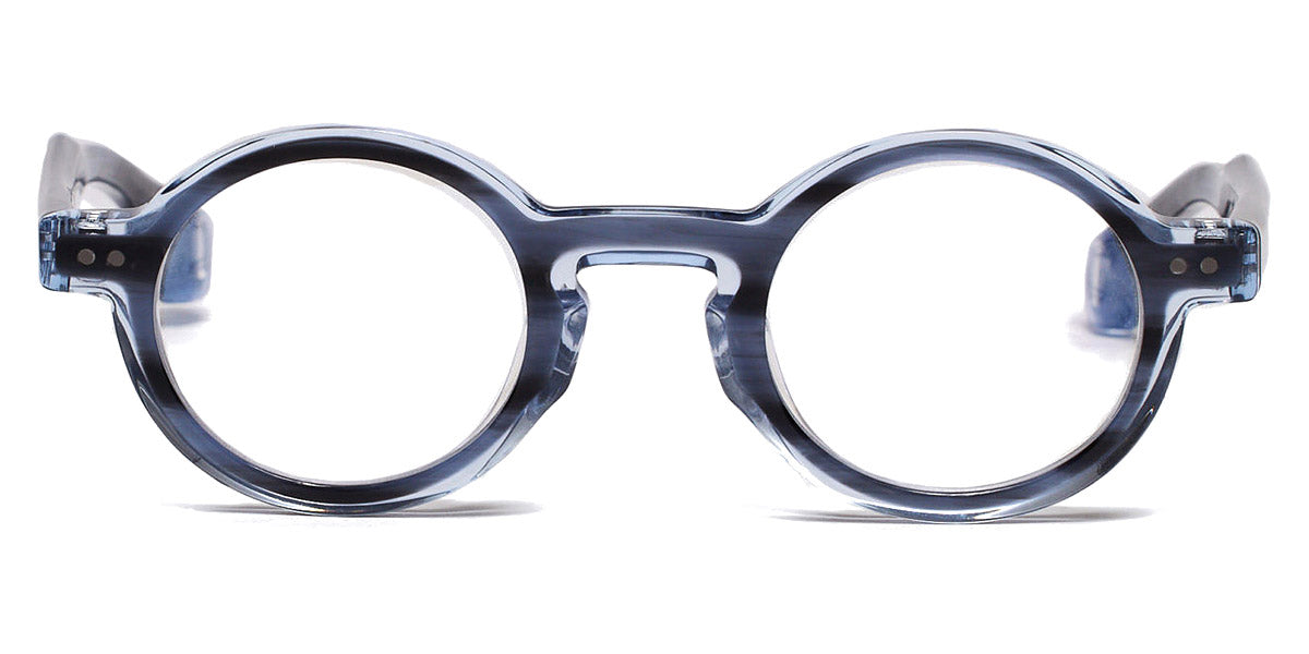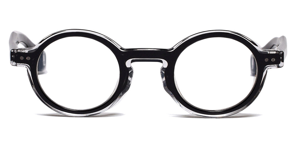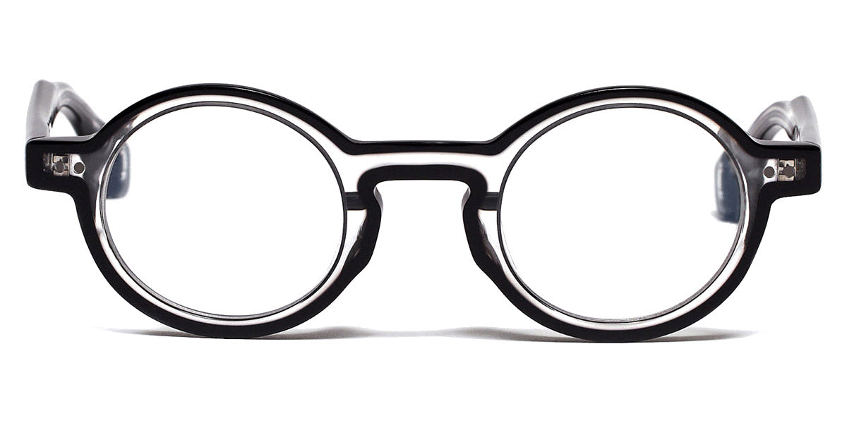 ALDRICH Eyeglasses by Blake Kuwahara. Color: Crystal, Midnight, Navy Horn, Red Fade, Size: 44-27-140. Handcrafted from Japanese acetate, the ALDRICH eyeglasses are a true representation of Blake Kuwahara's artistry, showcasing the brand's signature double frame effect. The soft-colored oval outline gives these glasses an understated elegance, while the transparent interior adds a touch of modernity. Designed to be both chic and functional, the ALDRICH seamlessly merges traditional craftsmanship with fashion-forward allure. Perfect for those who appreciate luxury in subtlety.