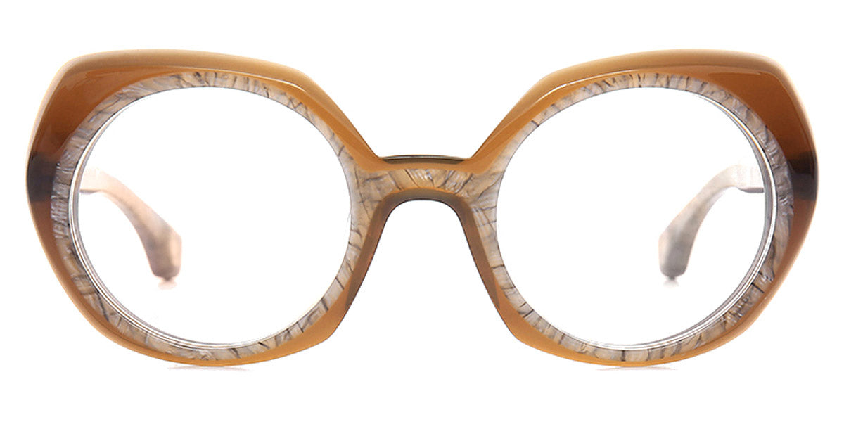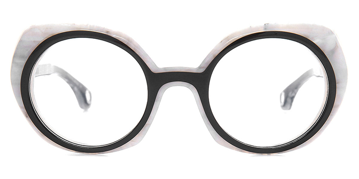 LAZLO Eyeglasses by Blake Kuwahara. Color: Midnight, Shell, Size: 52-25-145. The LAZLO eyeglasses take boldness to new heights with their butterfly-inspired design, featuring flawless circular lenses encased in chunky acetate. Providing perfect lightness without sacrificing endurance, this model merges dramatic form with bold color choices. A truly standout piece of eyewear with a touch of grandeur, the LAZLO is made for those who aren't afraid to try new styles and crave the finest things in life. Go for a look that’s both striking and luxurious with this striking model.