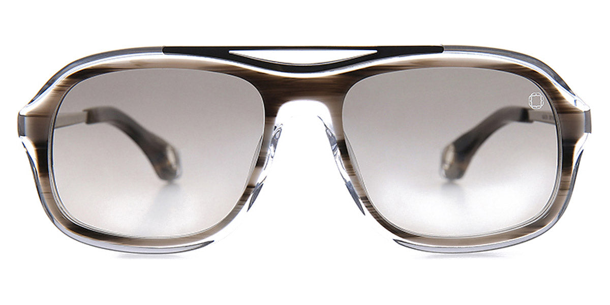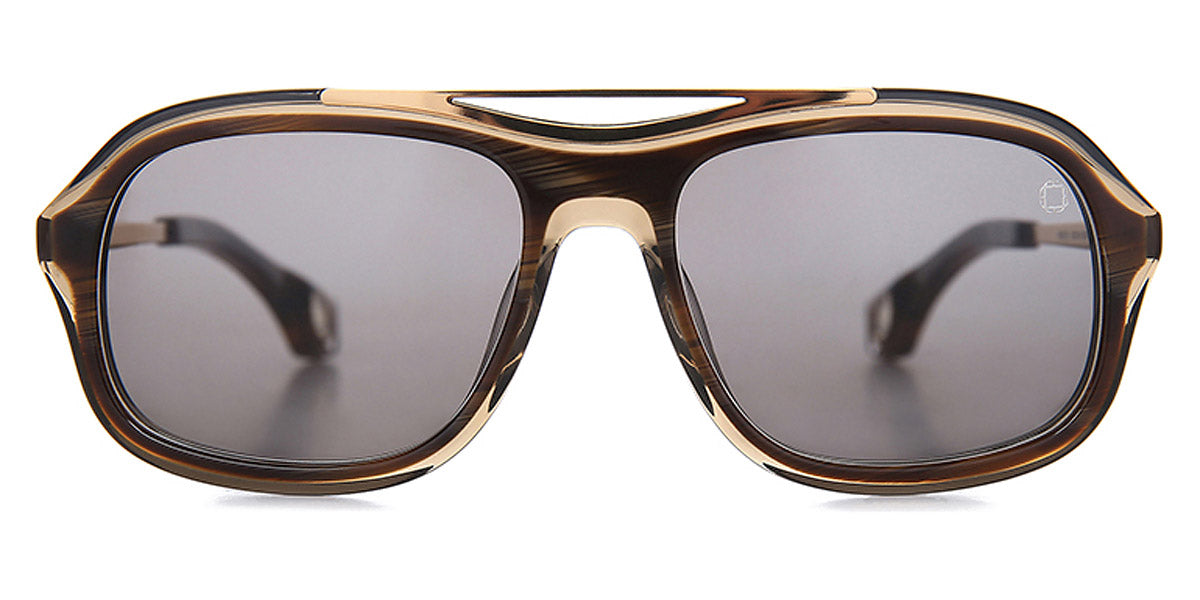 NIEMEYER Sunglasses by Blake Kuwahara. Color: Black Horn, Brown Horn, Grey Horn, Size: 56-18-145. Hovering at the intersection of aviator and shield designs, the NIEMEYER brings a fresh approach to these classic silhouettes. Boasting Blake Kuwahara's iconic double-contour acetate design, the model creates a seamless fusion of two styles that feels thoroughly modern. Though it looks rather massive, the frame is incredibly light, ensuring comfort throughout the day. Elevate your style with the NIEMEYER and dazzle with a look that transcends the ordinary.