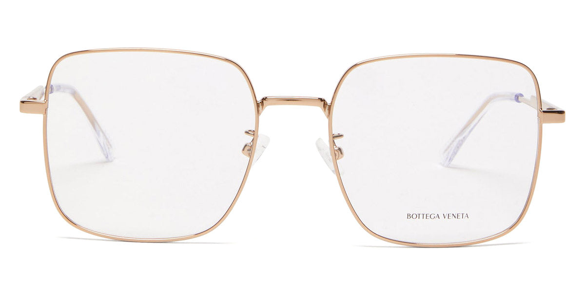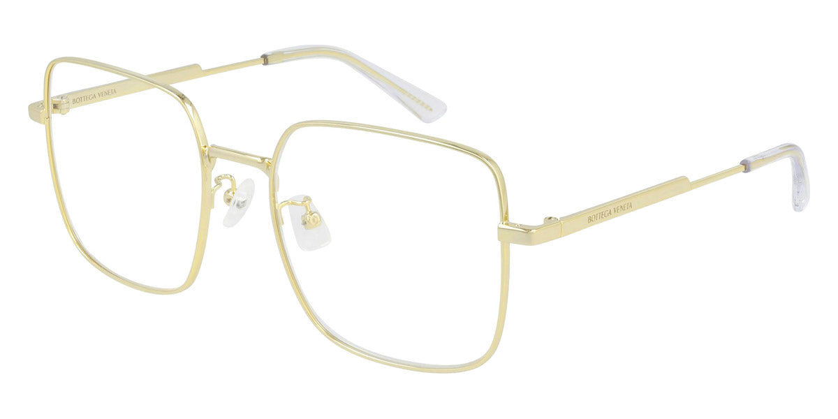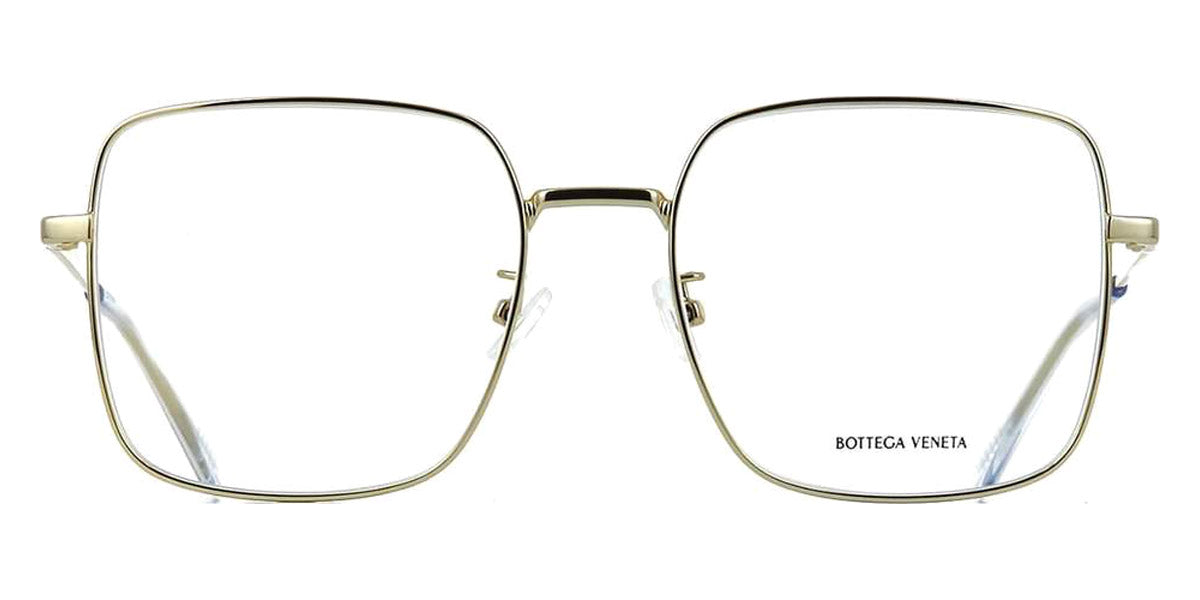 BV1110O Eyeglasses by Bottega Veneta. Material: Metal, Shape: Square, Color: Gold, Red, Silver, Size: 56-19-145. The BV1110O doesn't simply sit on your face - it becomes an integral part of your identity, a silent yet powerful statement about who you are and what you value. When you wear these glasses, you're joining a select group of individuals who appreciate the subtle art of true luxury. They're for people who understand that real style isn't about following trends, but about setting them; not about standing out, but about standing apart. The BV1110O is a lifestyle choice, a commitment to excellence in every aspect of life, from the books you read to the company you keep.