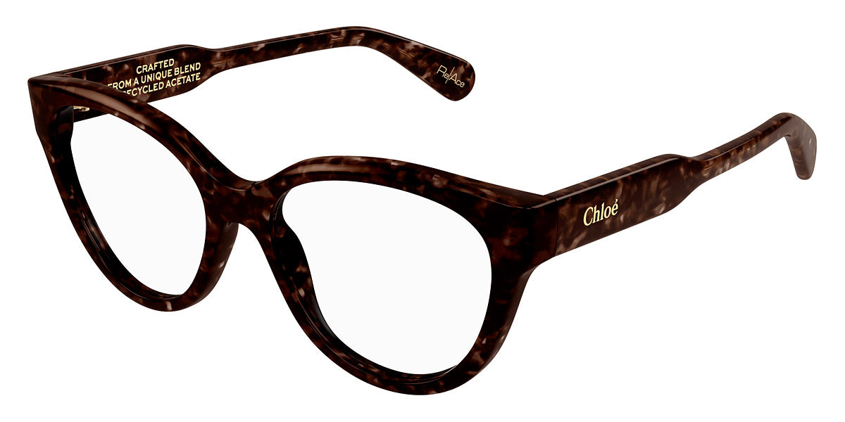 CH0193O Eyeglasses by Chloé. Color: Black, Havana, Size: 53-17-145. Inspired by the 70s bohemian spirit, Chloé glasses are sophisticated and elegant pieces that exude refinement and attitude while elevating the Maison’s vision of modern femininity. From bold oversize contours to subtle and sleek silhouettes, each Chloé frame exemplifies the brand’s precise craftsmanship and artisan flair. It utilizes bio-based and lower-impact materials that are masterfully combined with premium-quality lenses to get nothing but remarkable eyewear designs. The head-turning metal accents finish the look.