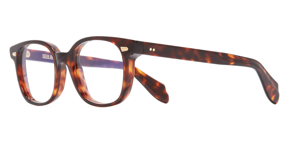 Cutler and Gross® CGOP999048. Color: Dark Turtle,Deep Teal,Granny Chic,Purple On Black, Size:48-145. The workmanship, attention to detail and consistency of the Cutler and Gross design language is special. You can choose from an array of classic styles mixed with more fashion-forward silhouettes. The frames are striking yet sophisticated, sculptural in design and stunning in quality. Most Cutler and Gross glasses are crafted from the finest-grade Italian acetate. The manufacturer utilizes 9mm and 10mm acetates and special lamination techniques, which make these frames unique and ultra-modern. Also, they boast an amazing selection of custom colors and transparent acetates revealing the hardware of the frames. The spectacles feature sculpted frontals and robust temples for a perfectly balanced fit. Each and every Cutler and Gross frame fits like a bespoke suit or tailored dress.