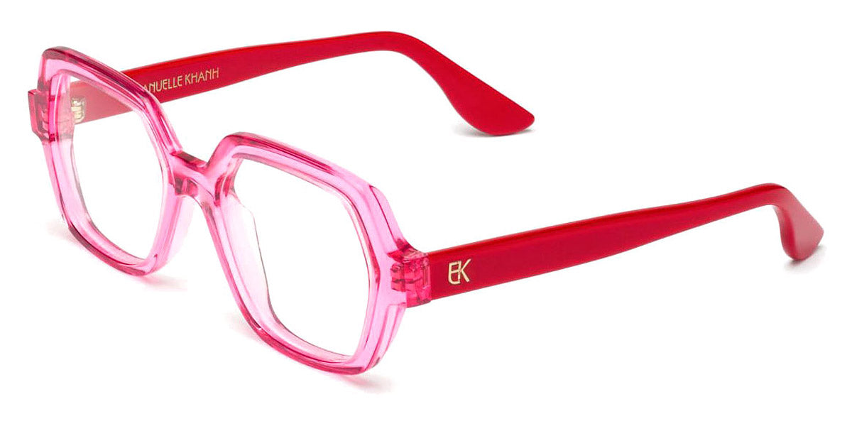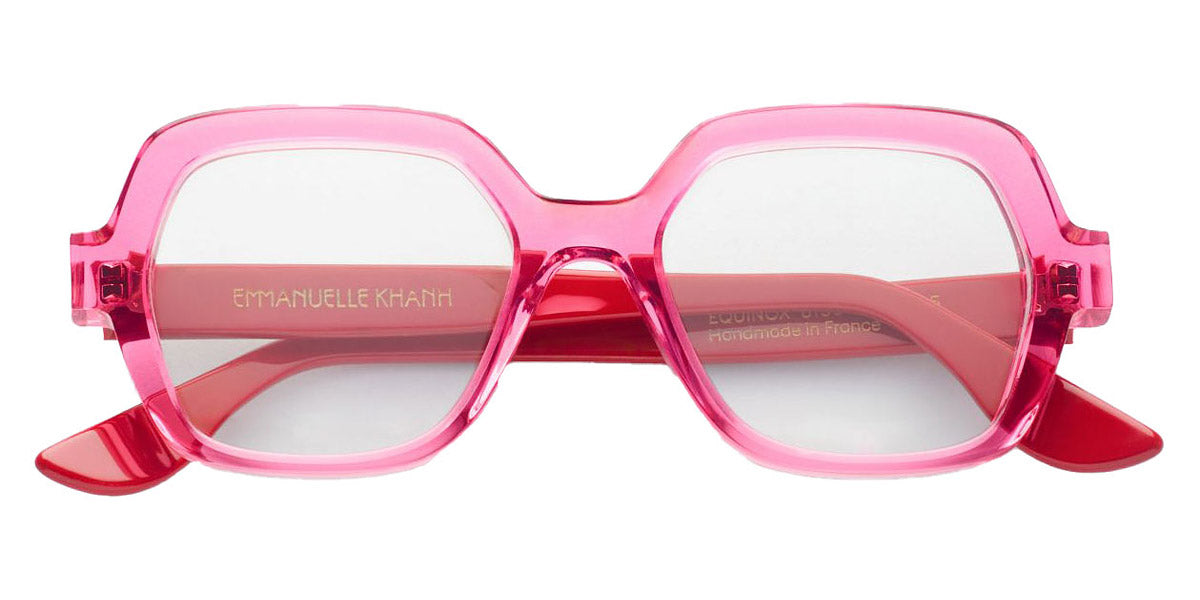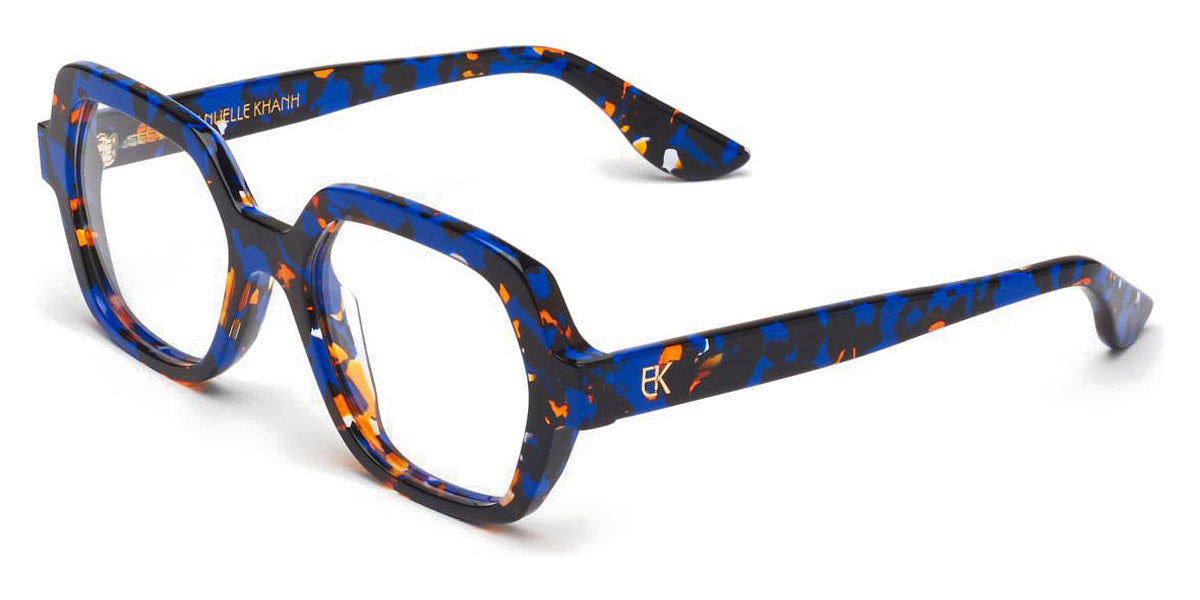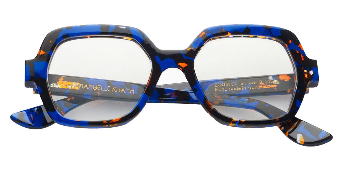 EK EQUINOX Eyeglasses by Emmanuelle Khanh. Material: Acetate, Color: 91 - Blue Tortoise, 18 - Dark Tortoise, 355 - English Green, 3155 - Brown, 8106 - Raspberry Rose, Size: 48-19-145.