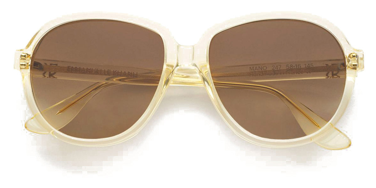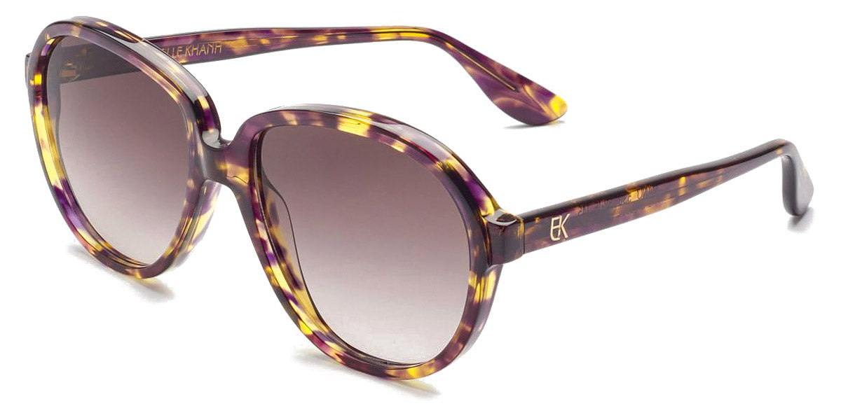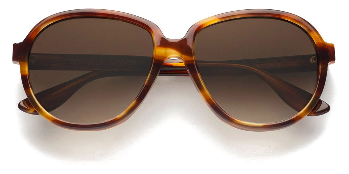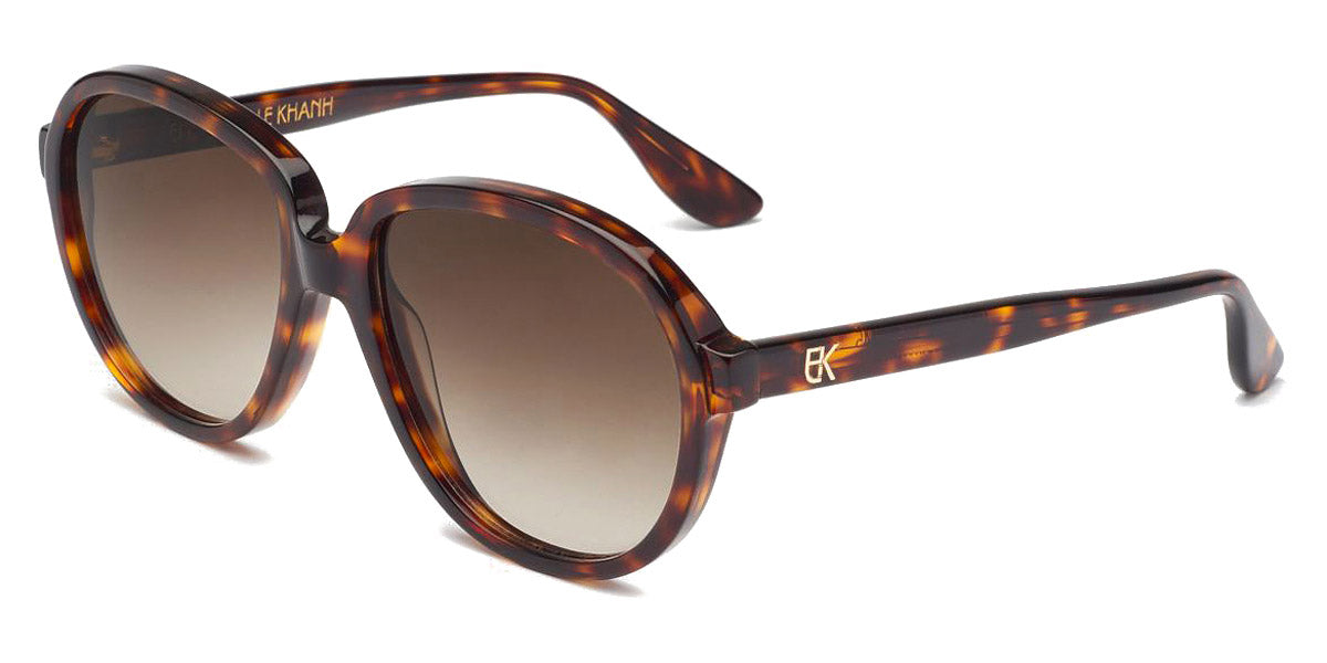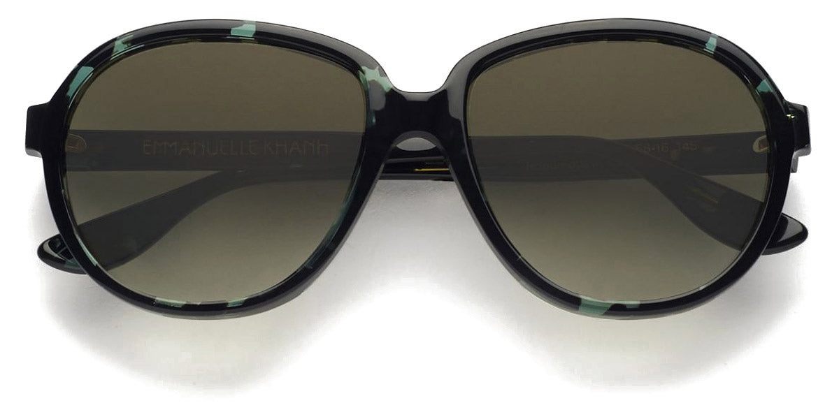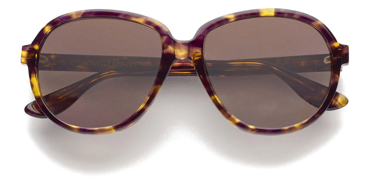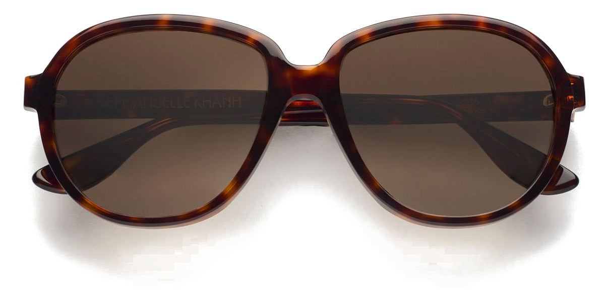 EK MANO-SOL Sunglasses by Emmanuelle Khanh. Color: 18 - Dark Tortoise, 247 - Egg Shell, 316 - Pale Pink, 5147 - English Green, 525 - Tabacco, 530 - Light Tortoise, 812 - Rose, 968 - Eggplant, Size: 58-16-145. If you’re looking for dazzling oversized frames with bold lines, the Emmanuelle Khanh glasses are just what you need. Taking inspiration from today's emancipated women and confident men, the brand creates distinctive frames with generous shapes and stunning embellishments. The materials are rich and dense, with exclusive colors developed by the House. The manually-carved and polished frames highlight the exceptional French savoir-faire to last a lifetime and remain timeless. Each pair of glasses features the iconic EK monogram, an elegant graphic motif that adds a touch of sophistication, glamor and opulence. In gold plated, it transforms the frame into a desirable jewel.