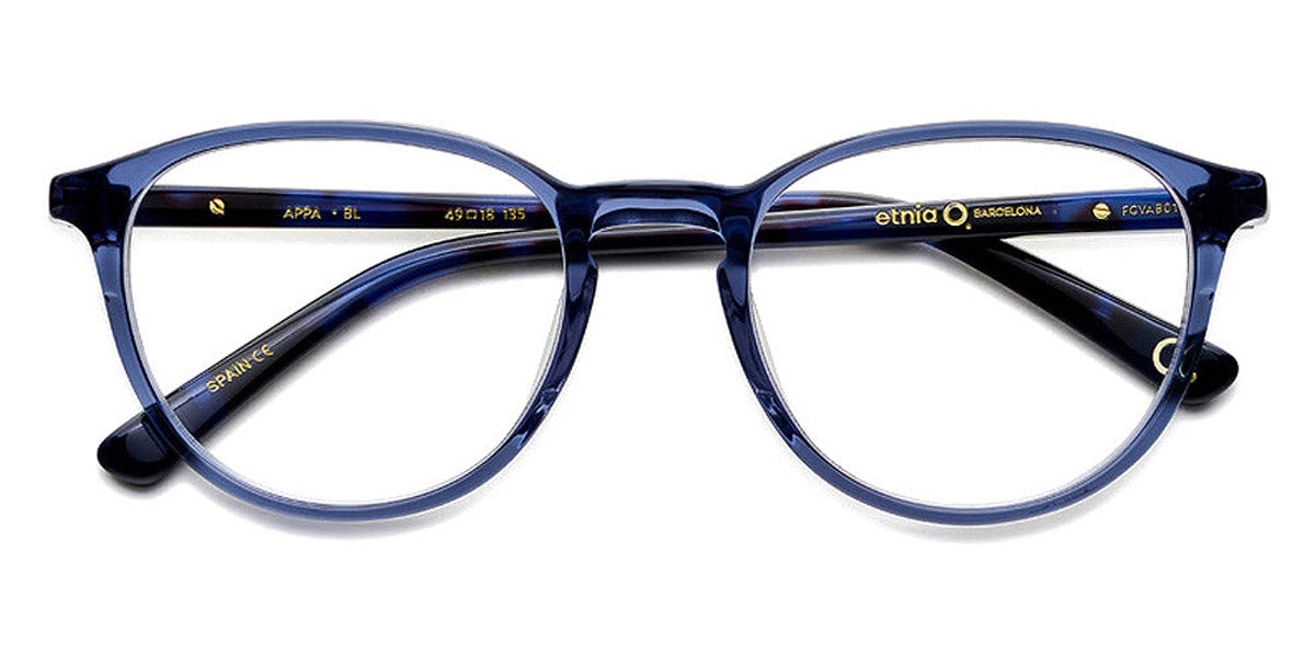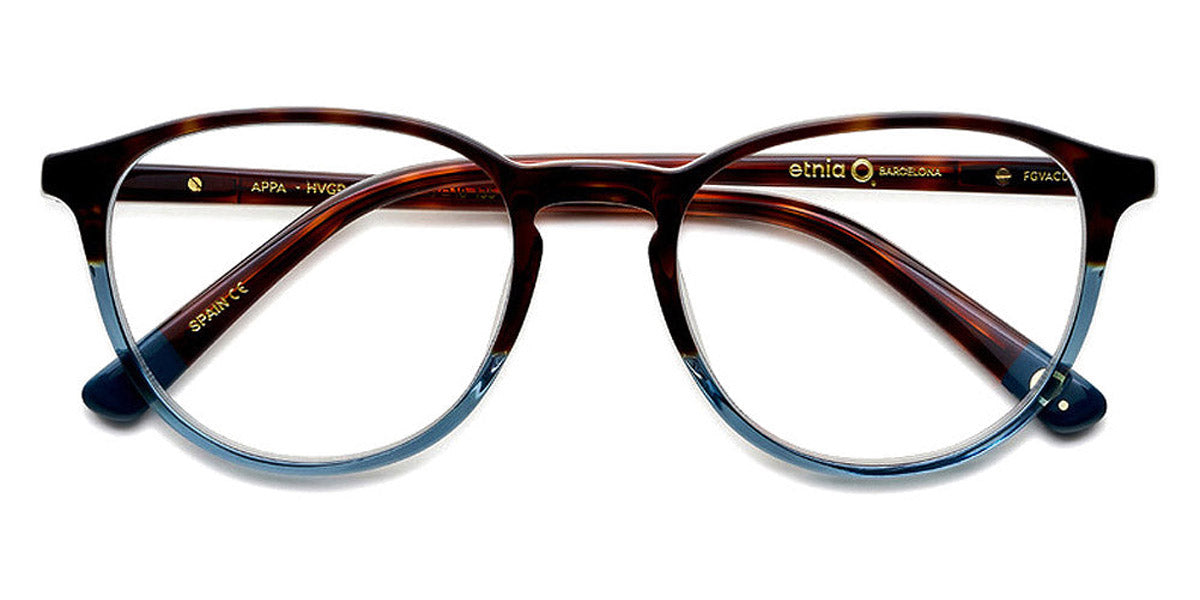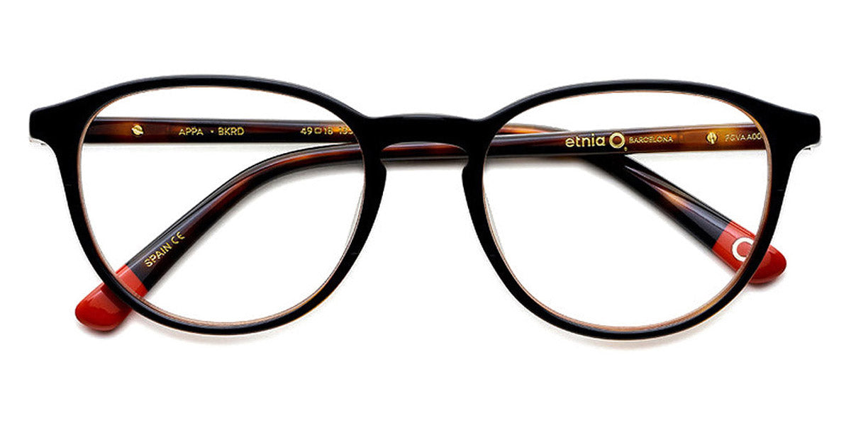 APPA Eyeglasses by Etnia Barcelona. Color: BKRD Black/Red, BL Blue, HVGR Havana/Green, PKHV Pink/Havana, Size: 49-18-135. The APPA eyeglasses deliver on boldness with an acetate frame that combines retro inspirations with modern design tweaks. Their slightly angular shape and structured bridge add a sturdy feel while accentuating facial features, making it a perfect fit for those wanting a dash of vintage with everyday wear. Subtle enough for any occasion but intriguing to just the right degree to stand out, the APPA is here to wrap you in style and comfort all the way.