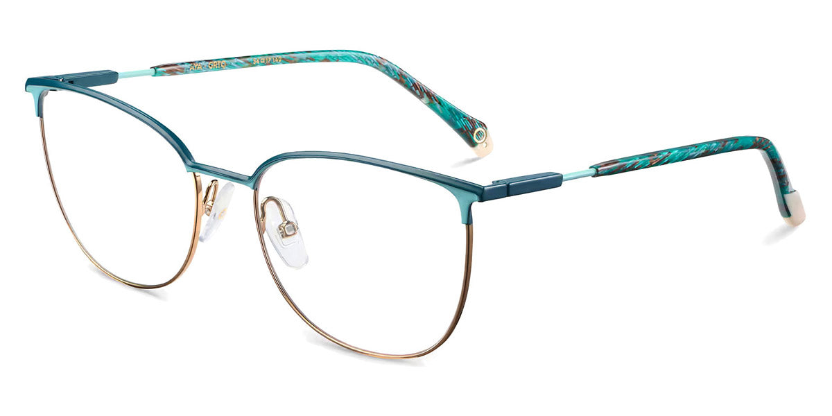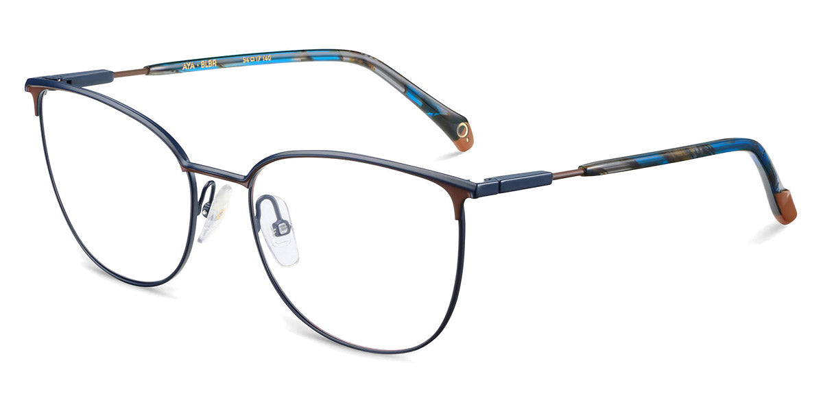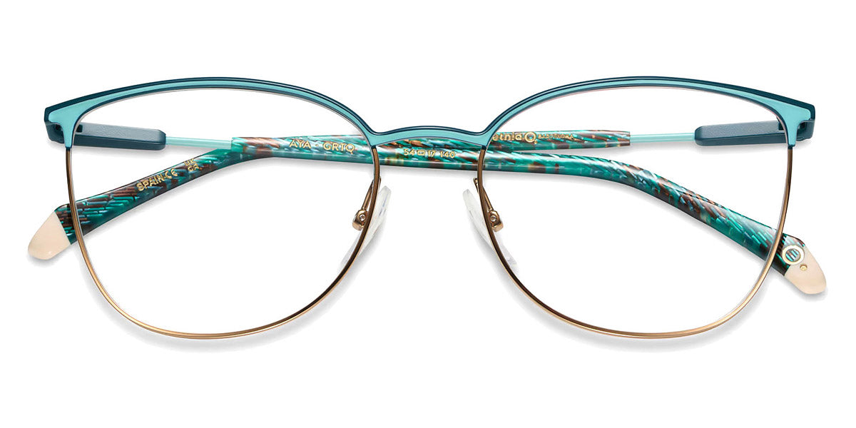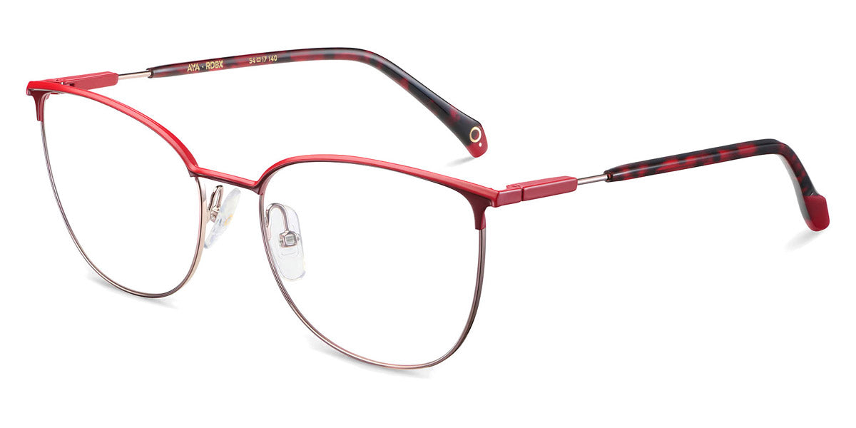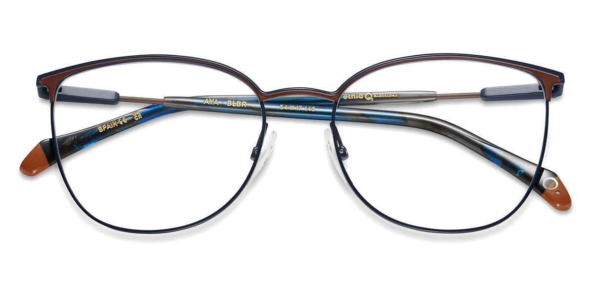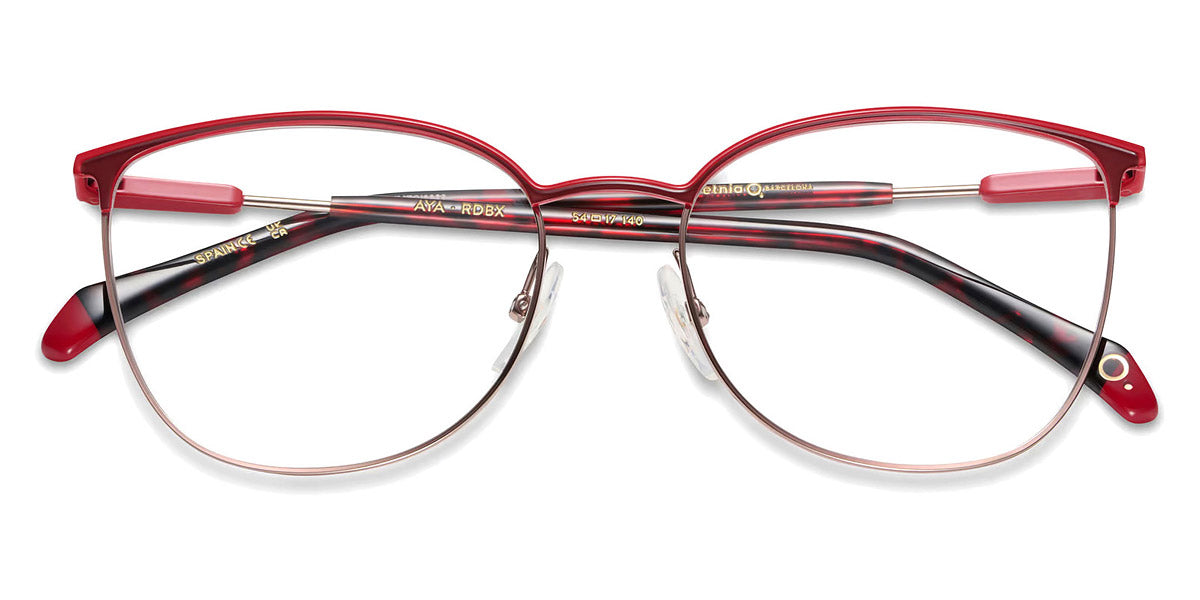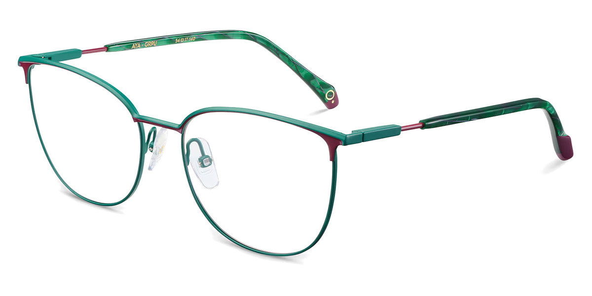 AYA Eyeglasses by Etnia Barcelona. Color: BLBR Blue/Brown, GRPU Green/Purple, GRTQ Green/Turquoise, RDBX Red/Red, Size: 54-17-140. A vibrant makeover of the classic cat-eye shape, the AYA brings a riot of color in a delicate design. Crafted from fine acetate, they offer both elegance and lightness to your everyday style with memorable palettes that are bound to command attention. The premium lenses, made from mineral glass, ensure perfect clarity under any conditions. Add bright hues and a bit of playfulness to your daily look with the AYA.