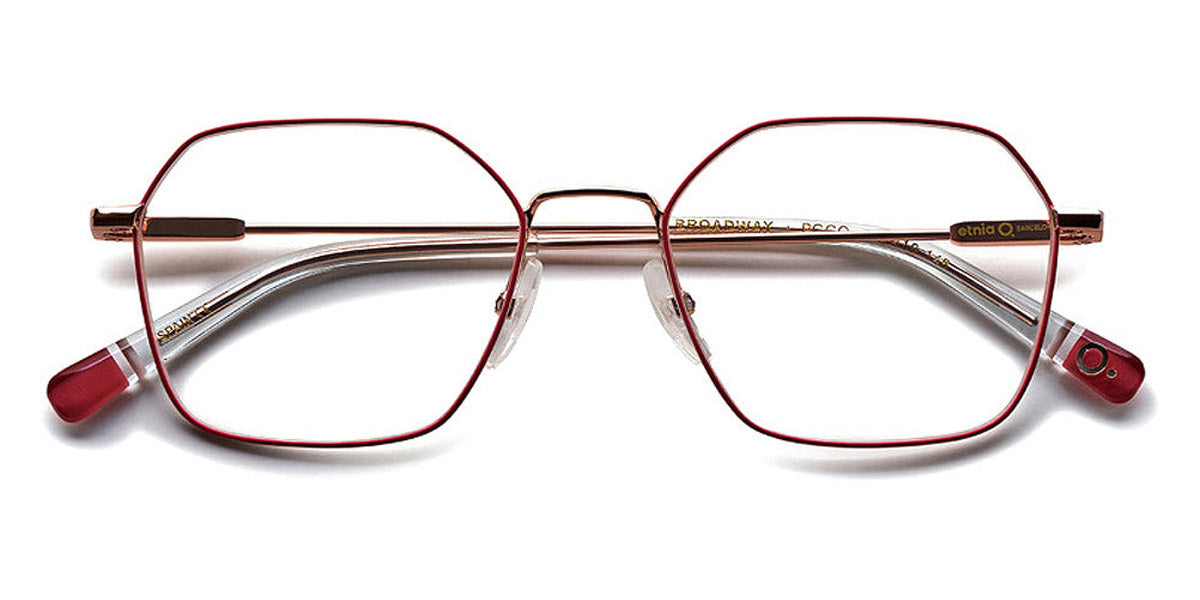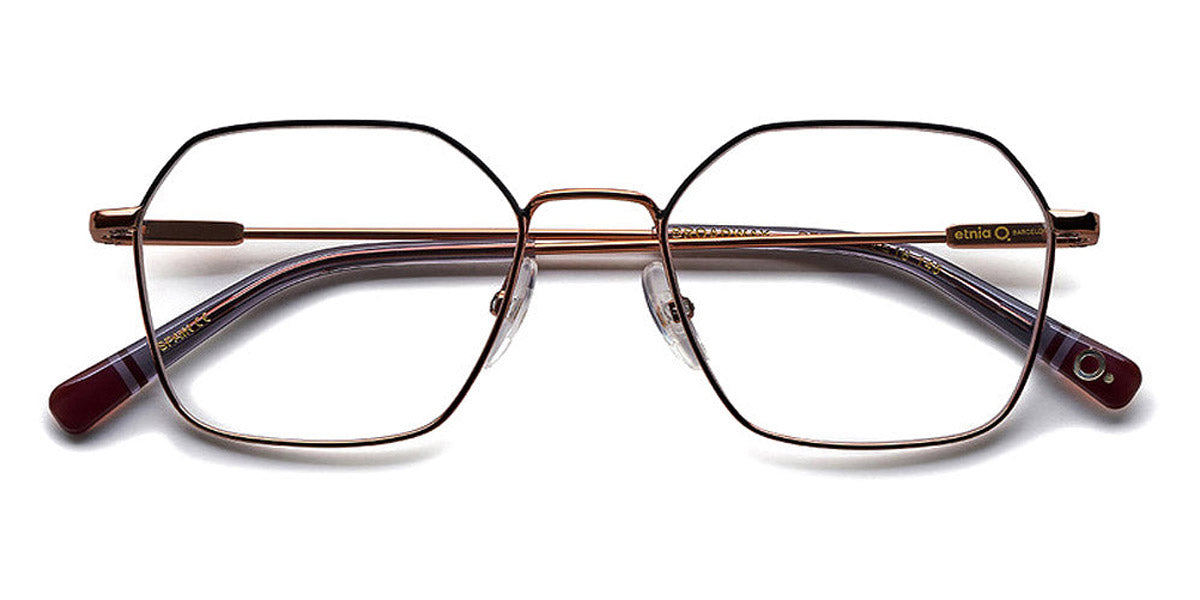 BROADWAY Eyeglasses by Etnia Barcelona. Color: PGCO Pink/Pink, BZBK Saddlebrown/Black, PG Pink, GDGR Gold/Green, Size: 52-18-145. Channeling the artistic flair of Broadway, these eyeglasses embody drama and elegance in equal measure. Their airy octagonal frame boasts a unique flow of lines and color blends, suited for a touch of creative flair. Etnia’s expert craftsmanship ensures these glasses offer not only standout style but also durable, high-quality wear. Stay light and bright every step of the way with your own BROADWAY pair.